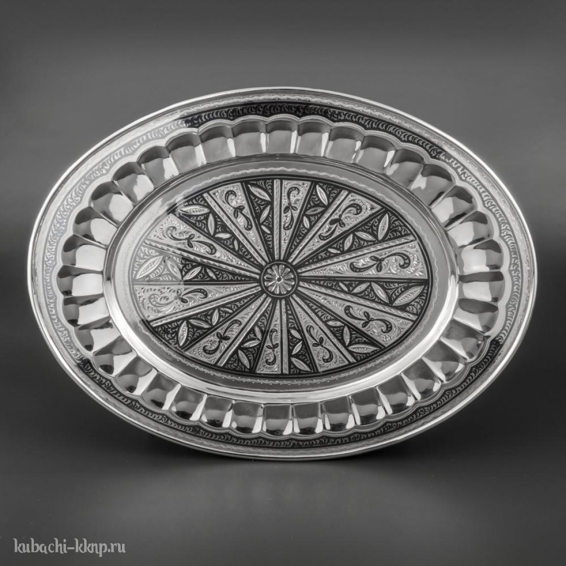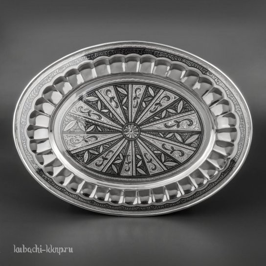 Серебряный поднос  с Кубачинским узором - пдн051