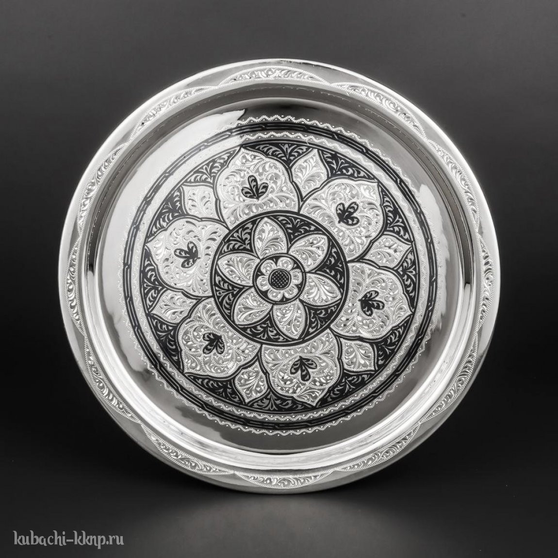 Поднос серебряный с  изящным узором - пдн02