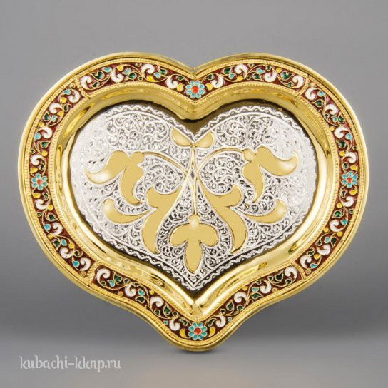 Поднос серебряный с эмалью «Сердце», пдн031