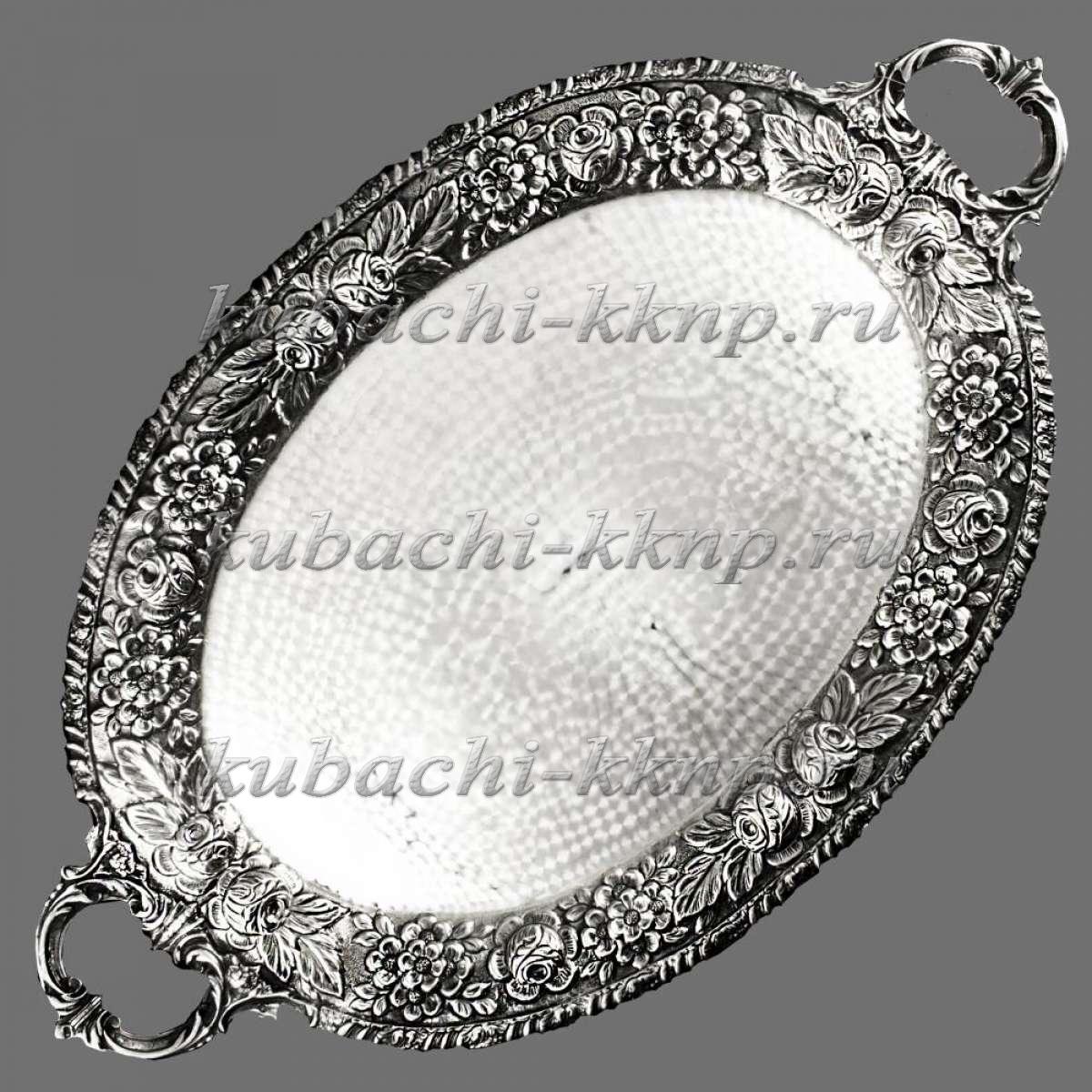 • Поднос серебряный с гравировкой и чернением - пдн029