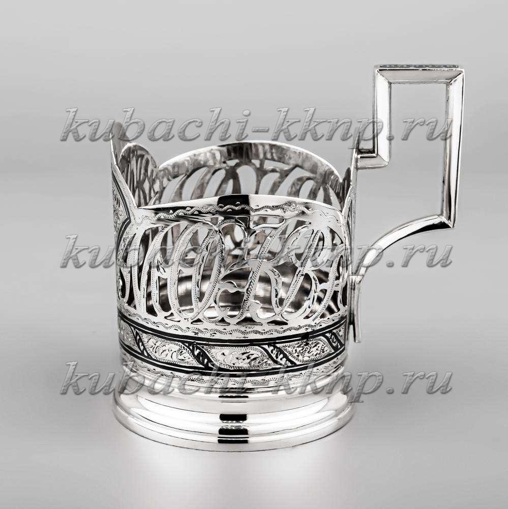 • Серебряный резной подстаканник с ложкой, 230 мл - пд012л