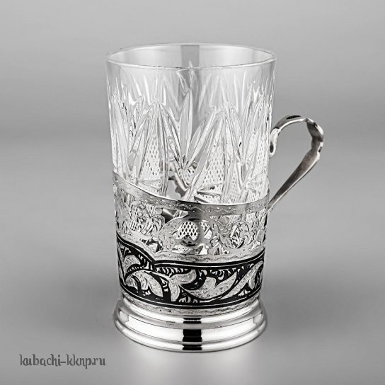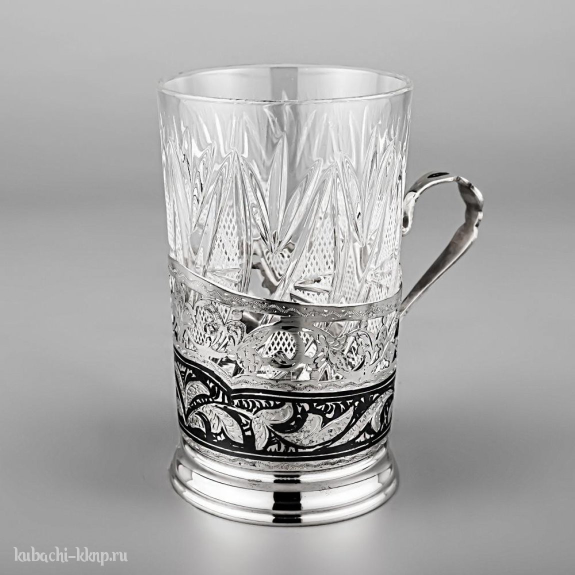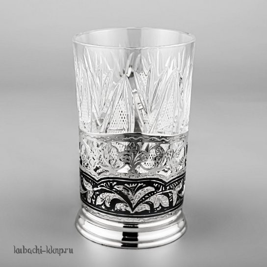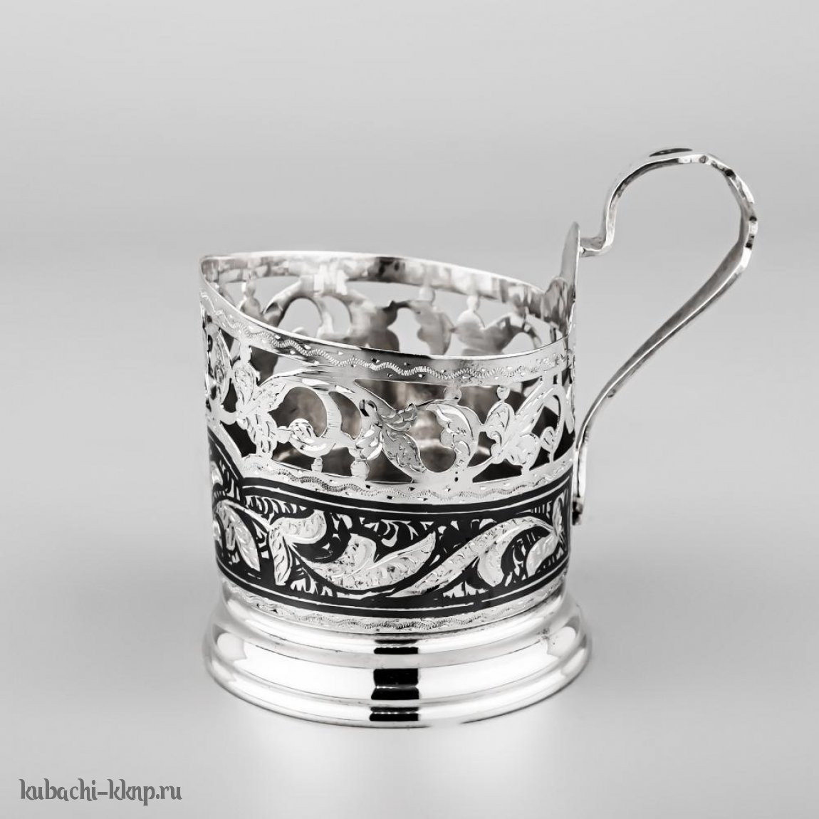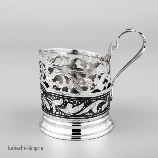 Серебряный подстаканник с чернением и круглой ручкой, 230 мл - пд021