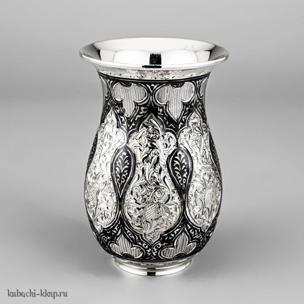 Серебряный стакан с чернением Кубачи, 210 мл - ст105