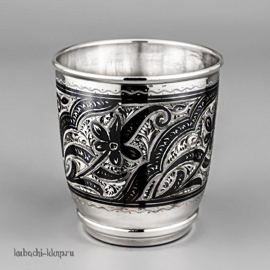 Серебряный стакан с черненым орнаментом и гравировкой «Калип», 210 мл, ст030