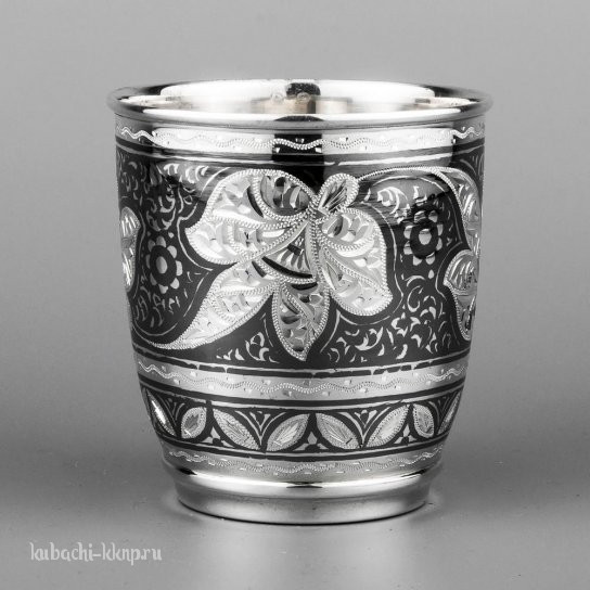 • Серебряный стакан ручной работы с красивой гравировкой - СТ129