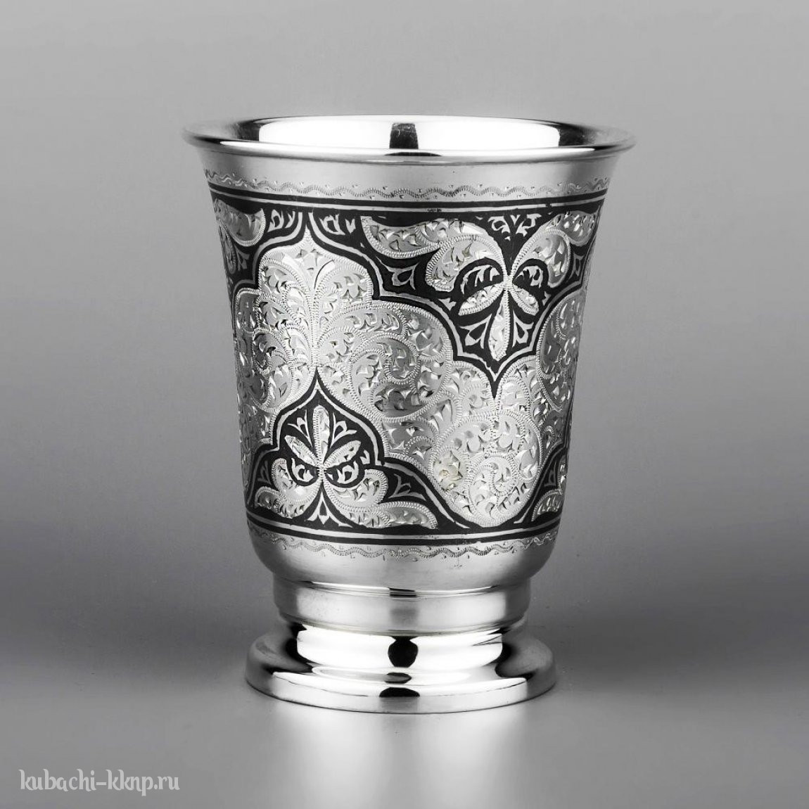 Серебряный стакан на ножке с гравировкой и чернением, 180 мл, ст20