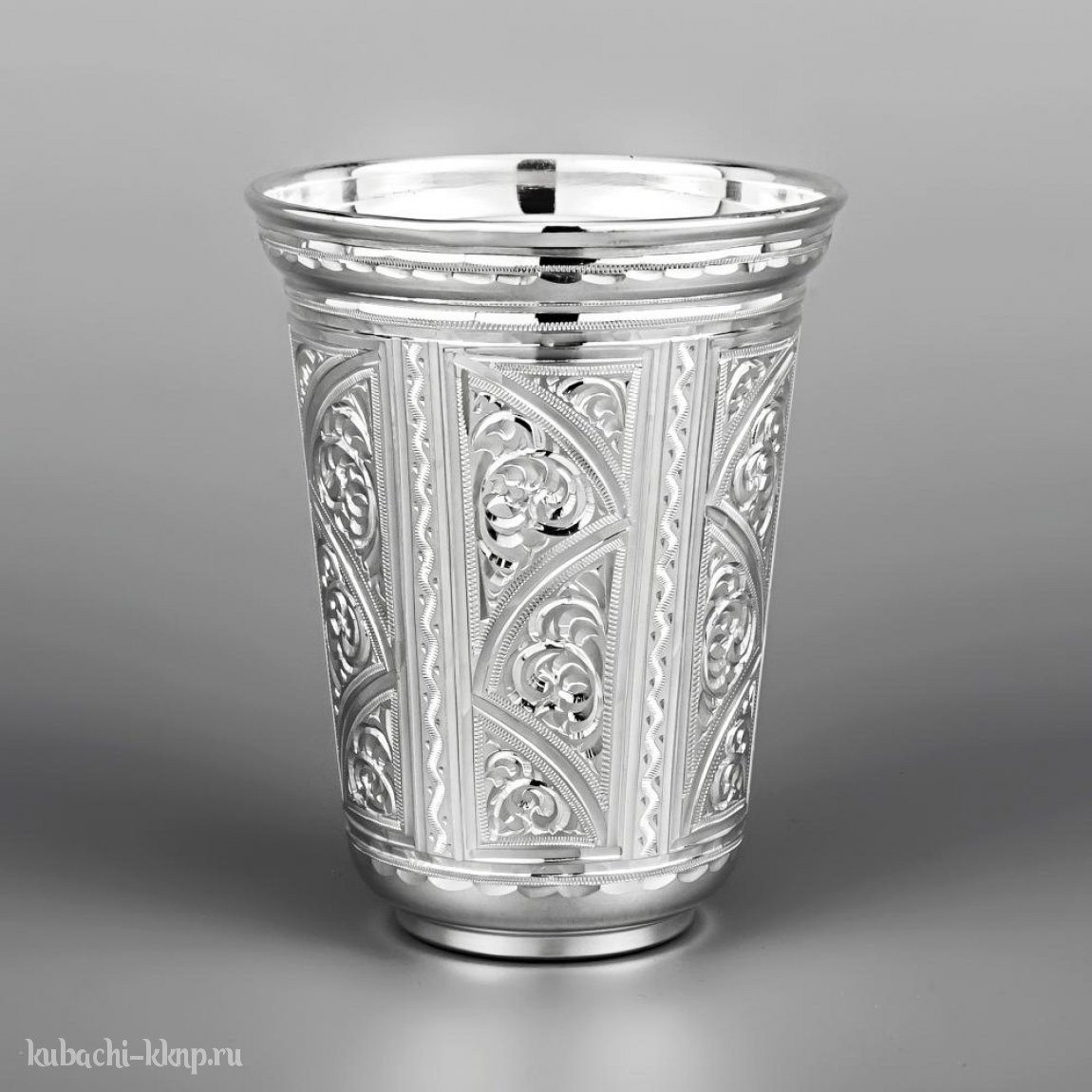 Стакан из серебра 999 пробы с красивым орнаментом «999», 244 мл - ст032