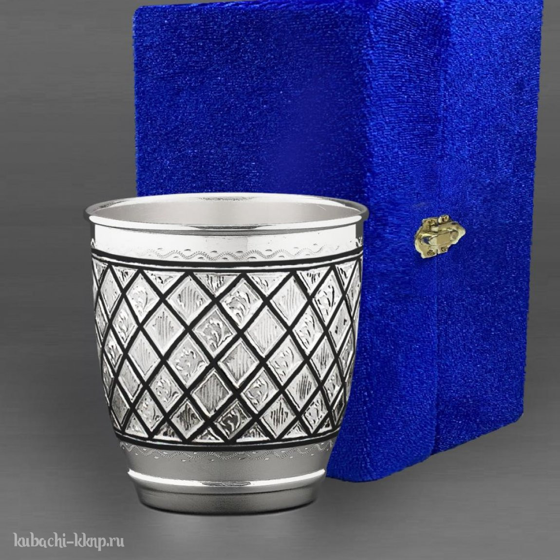Серебряный стакан с лазерной гравировкой и ромбовидной чеканкой, 220 мл - ст040