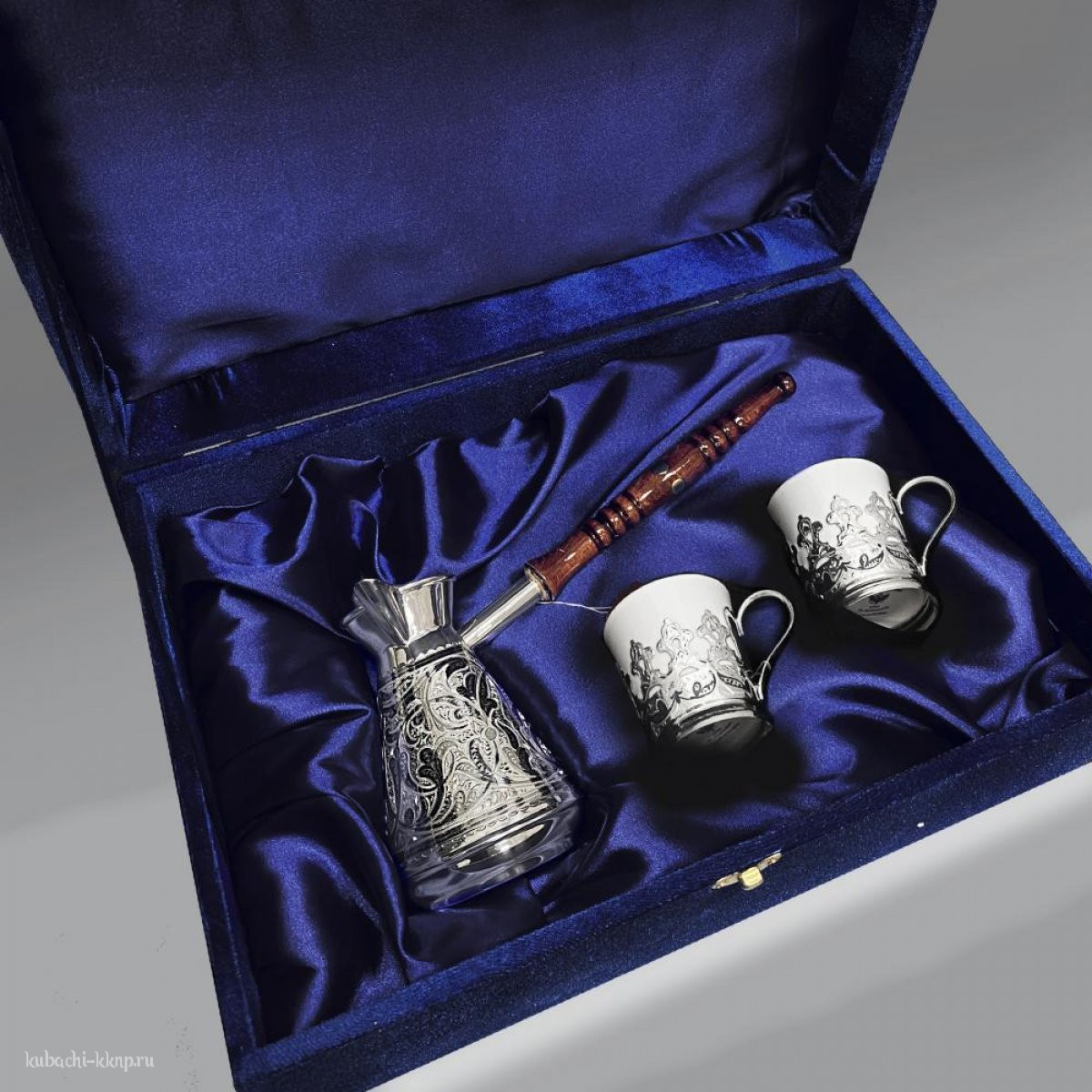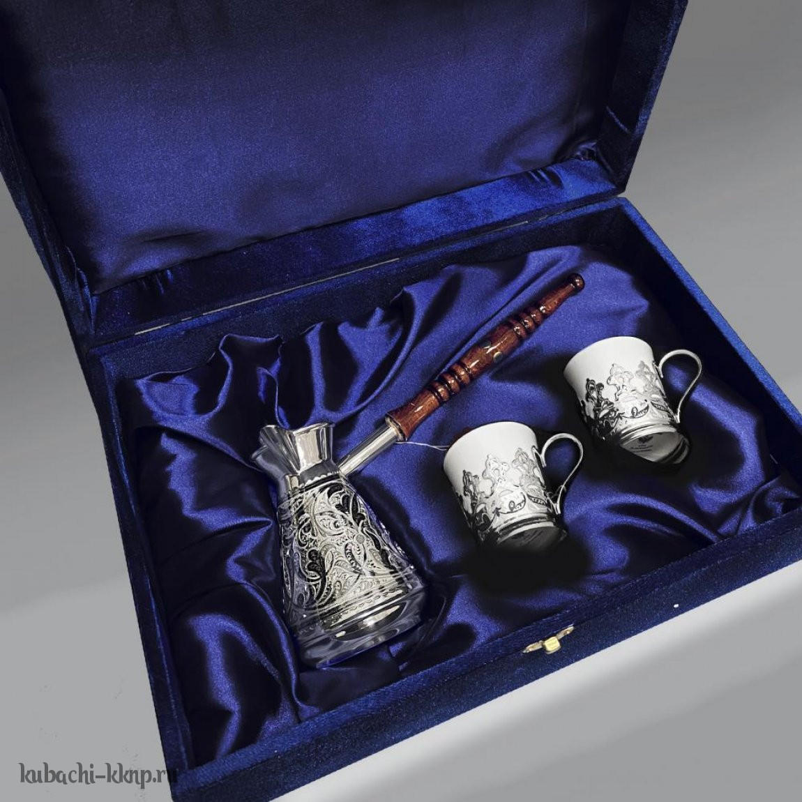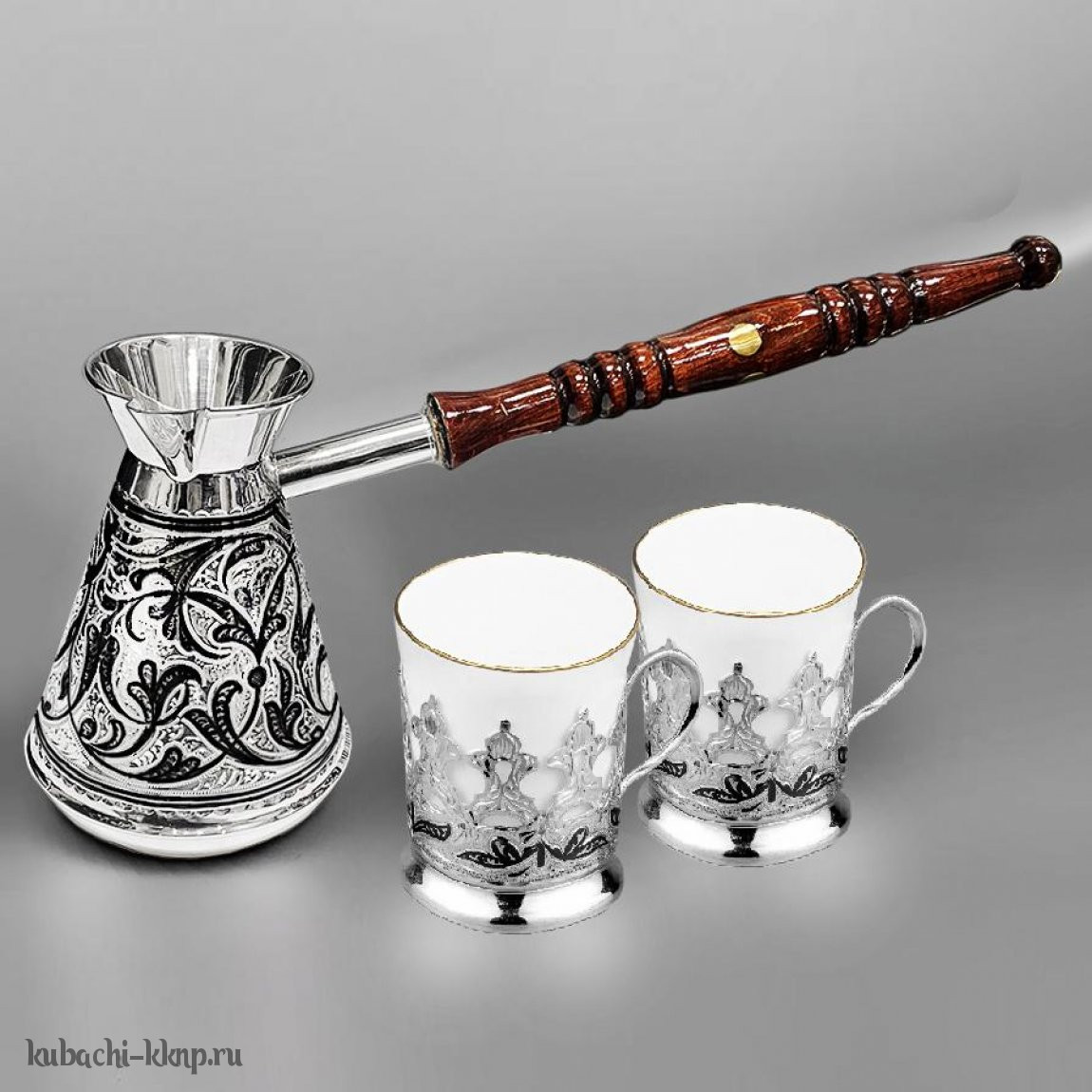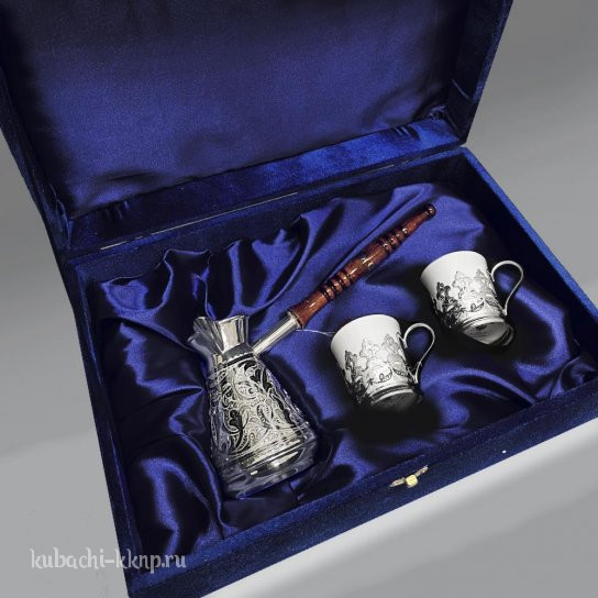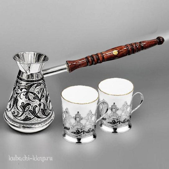 | Параметры: | Высота: 11 см турка и 6,5 см подстаканник, Объем: 265 мл турка и 80 мл подстаканник, Вставка: Фарфор (ЛФЗ), |