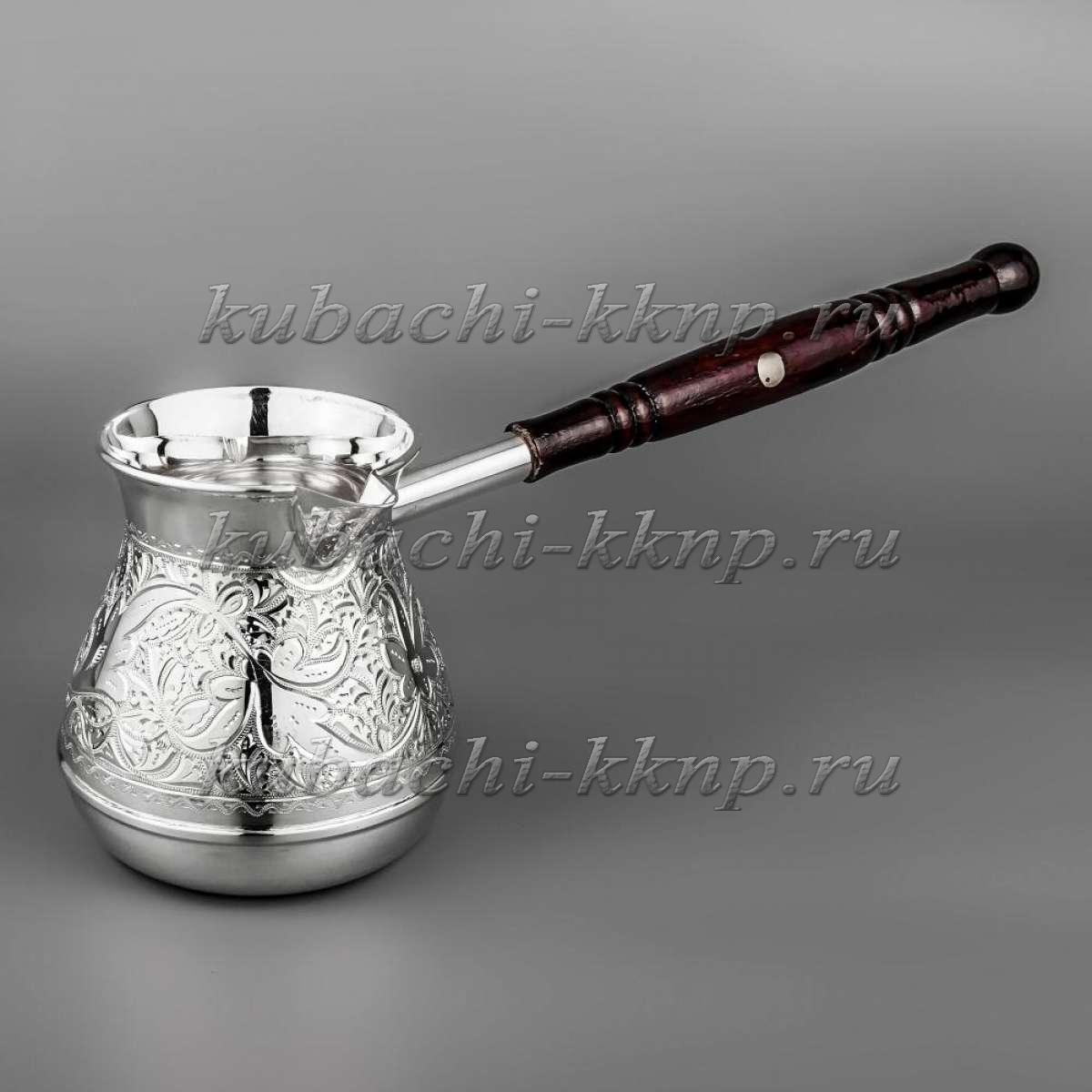 Серебряная турка (джезва) с гравировкой, 277 мл, т009