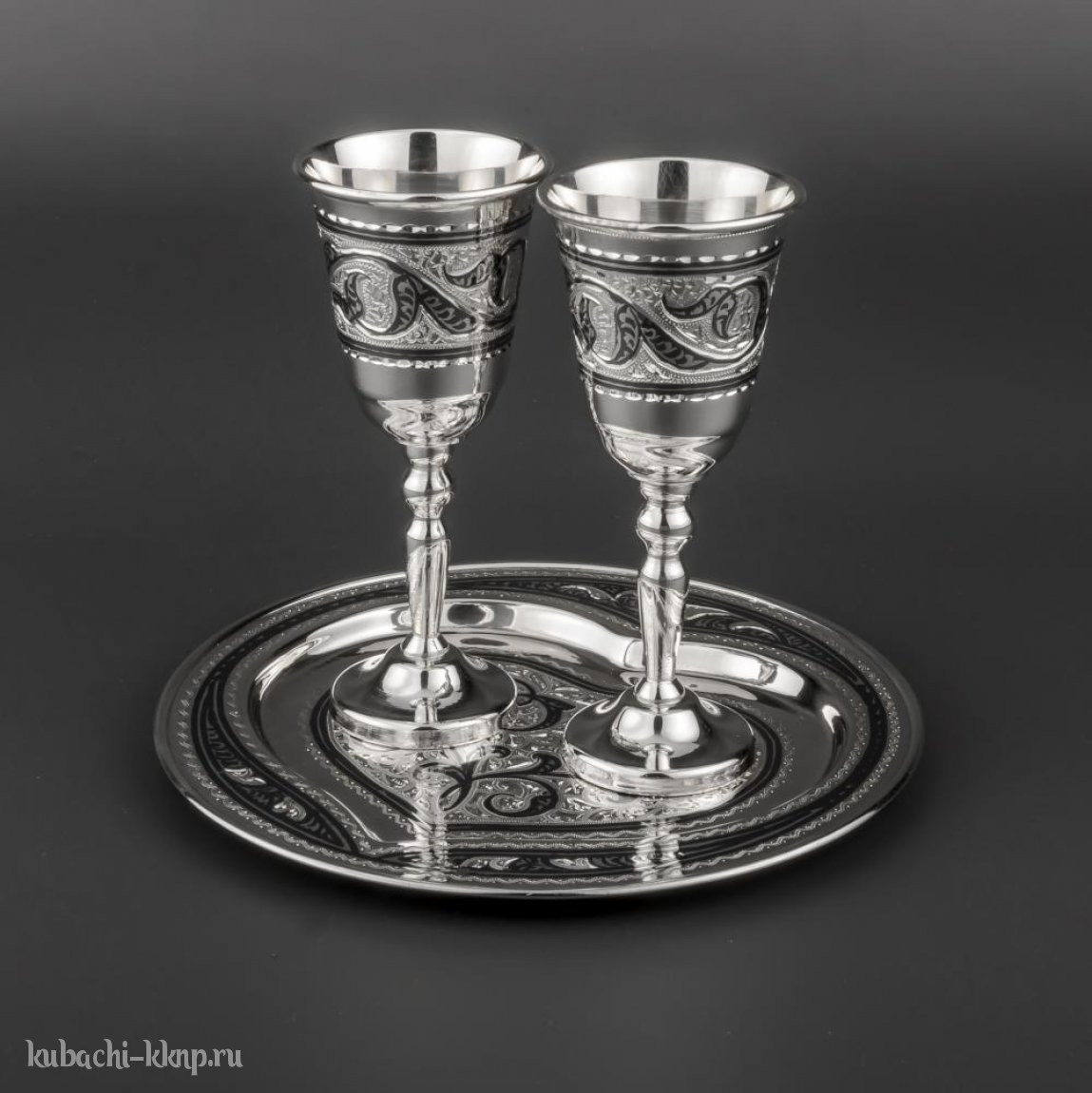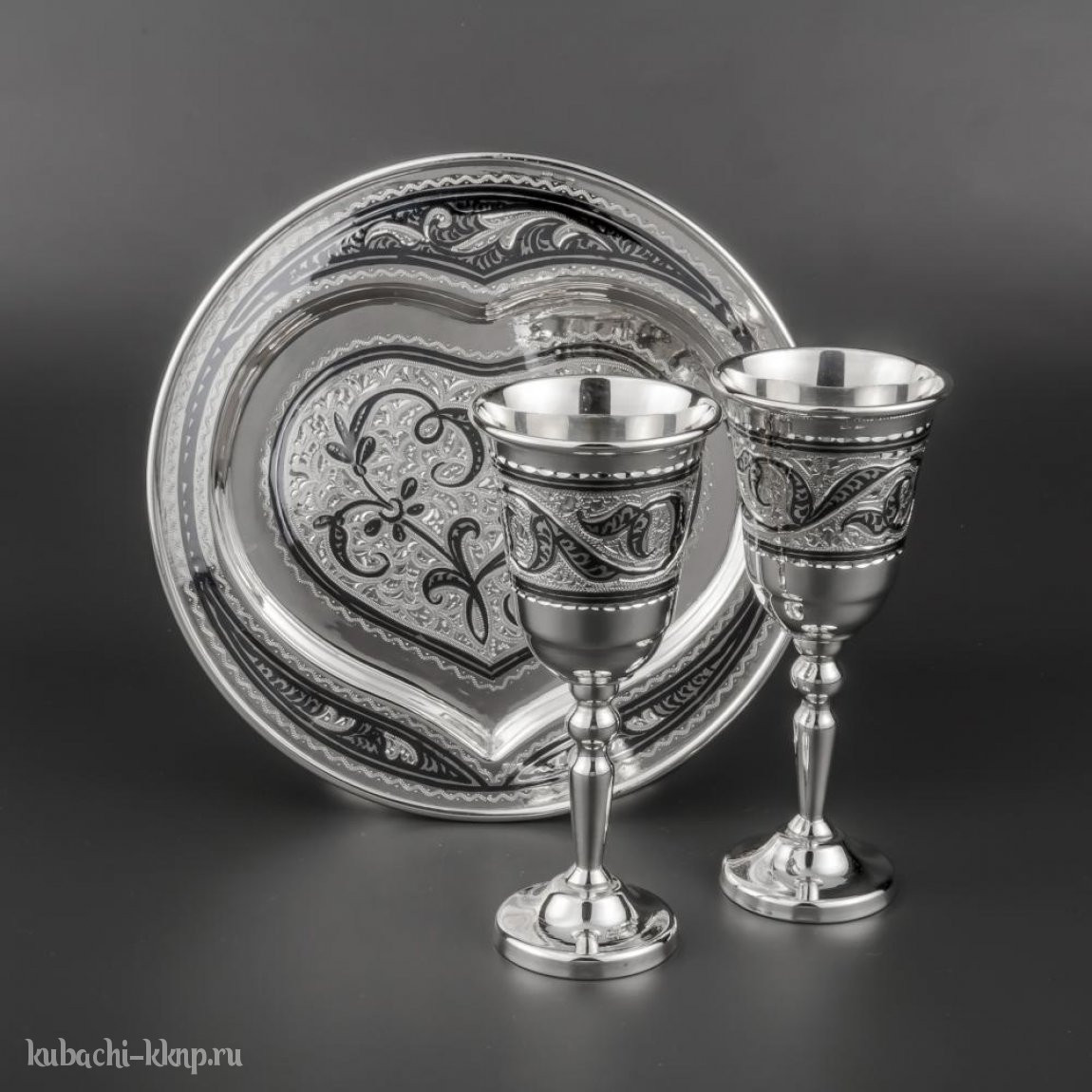 Набор серебряных рюмок на подносе «Сердечный», нр04