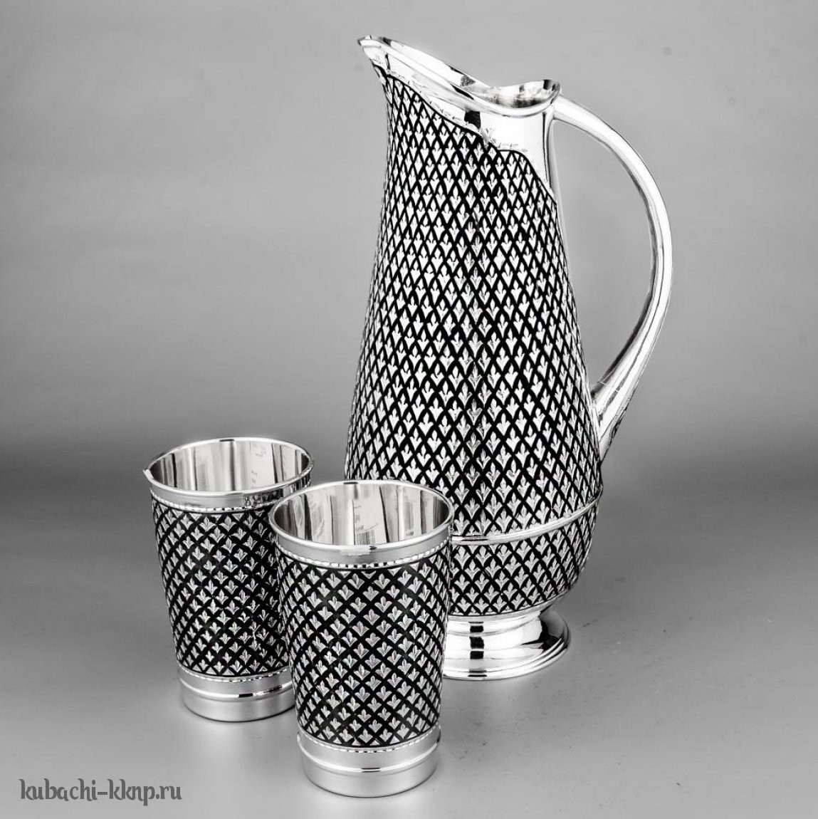 Серебряный набор с капельным чернением для воды с двумя стаканами, 1600 мл и 290 мл, ндв017