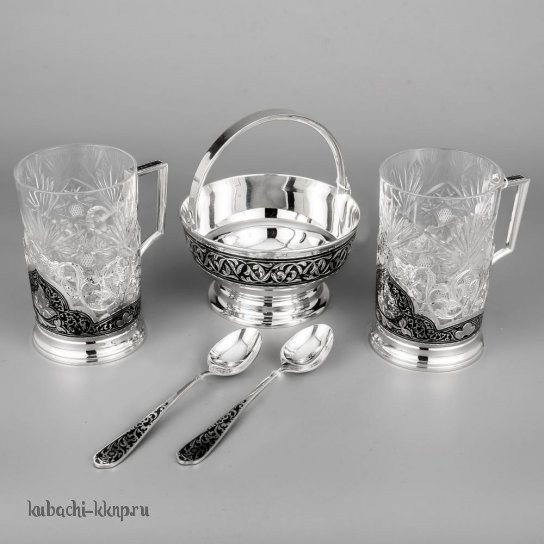 Набор для воды из серебра с гравировкой и вставками, 1,6 л - ндв013