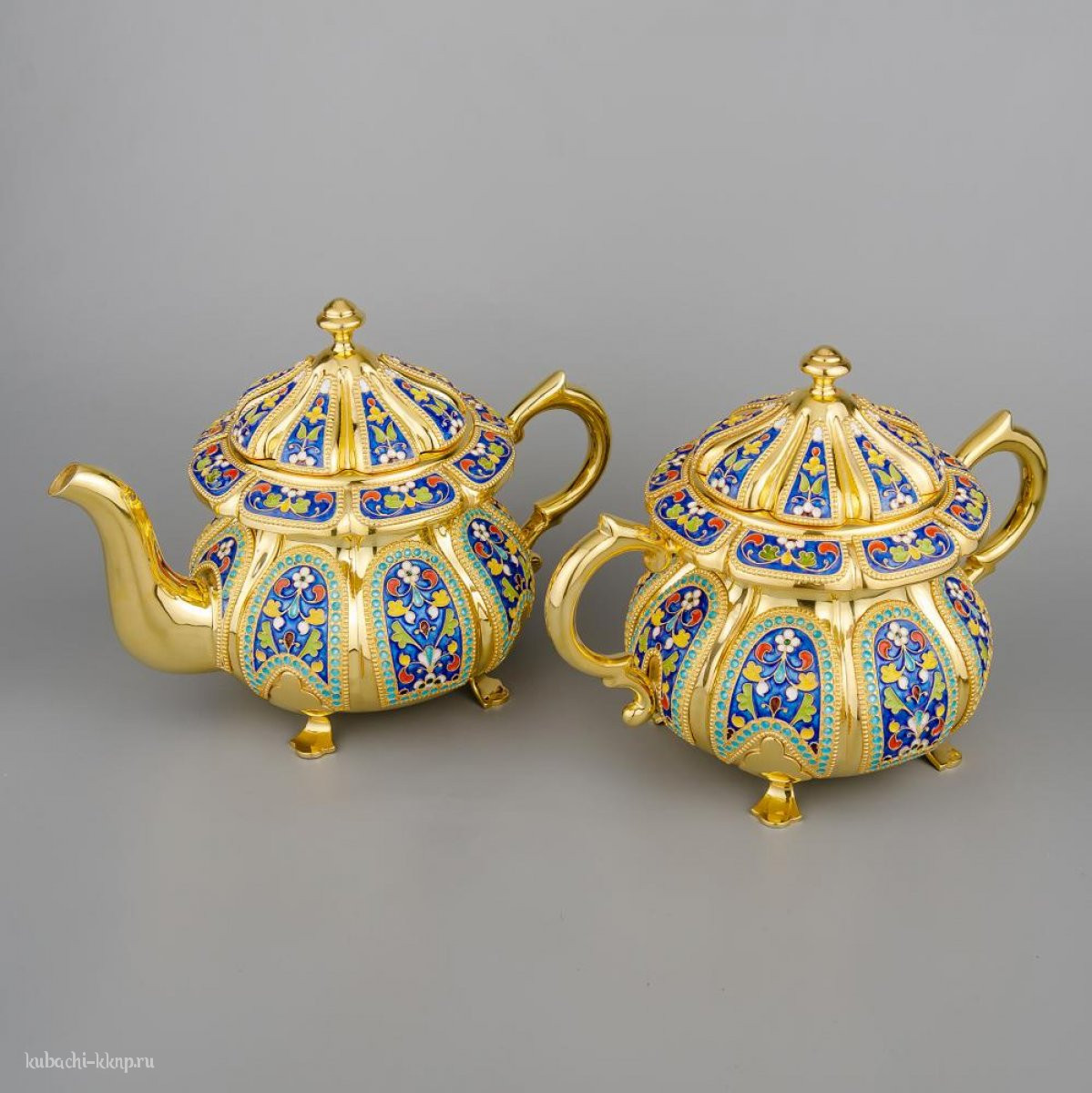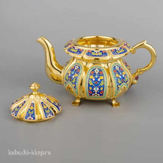 Чайный набор из серебра с позолотой, чср013