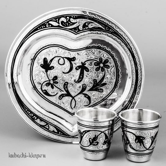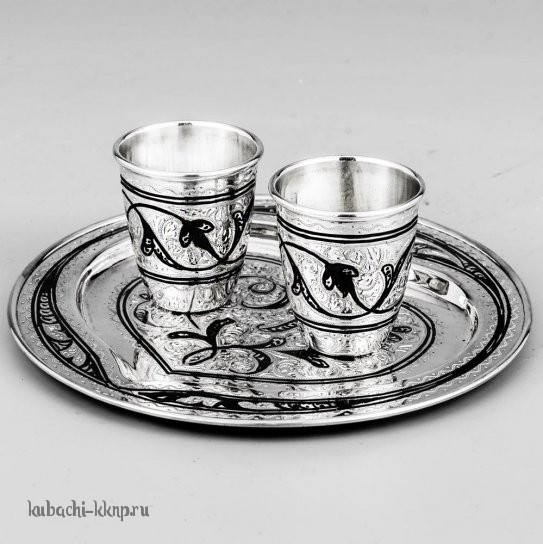 Набор серебряных бокалов с чернением «Кубачи», 245 мл - бк032-2