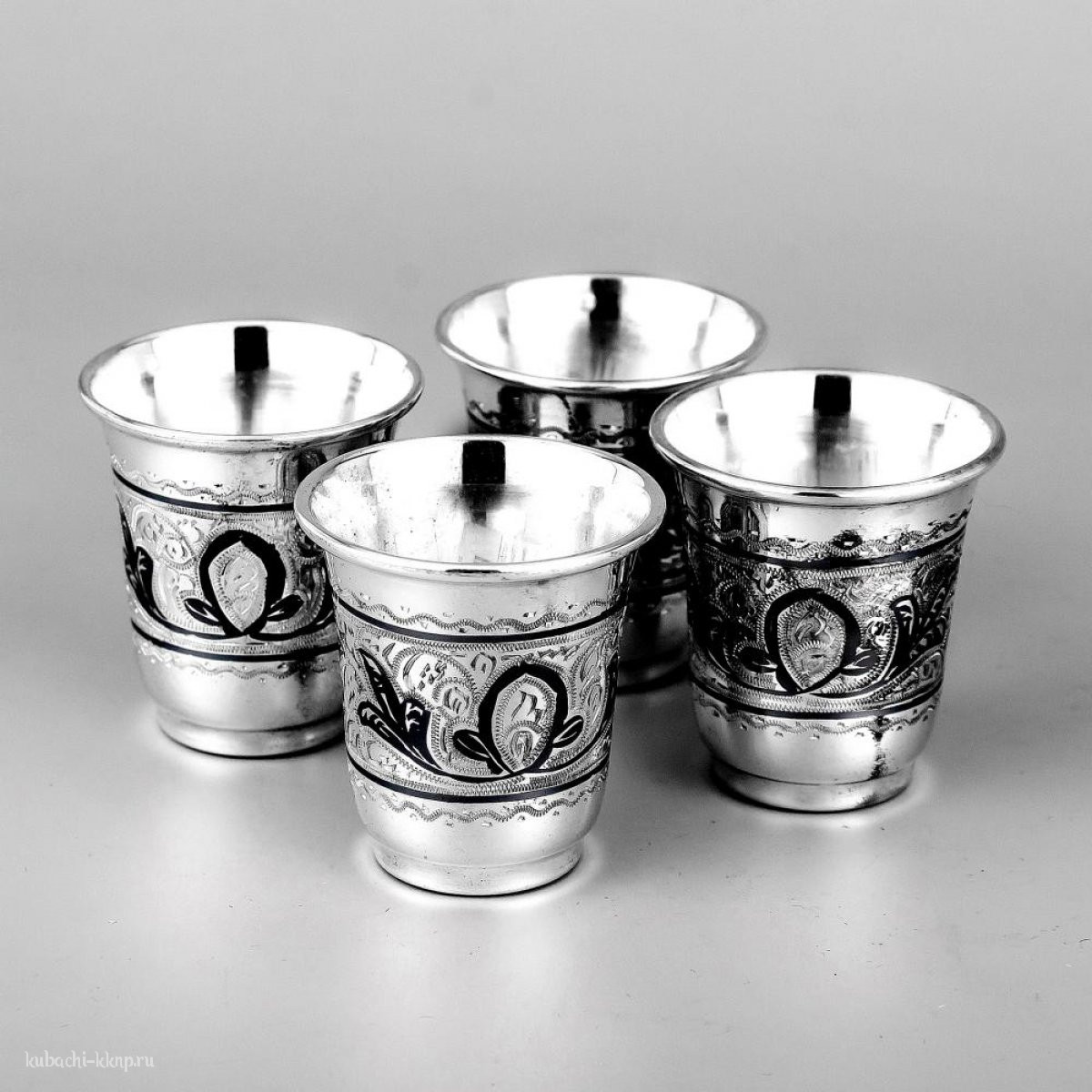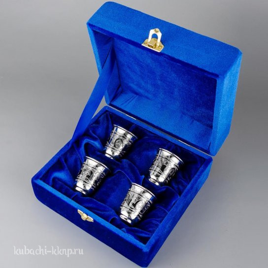 Набор серебряных стопок с чернением «На четверых», 45 мл, нс011