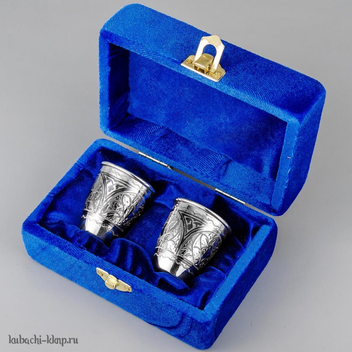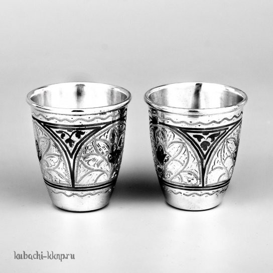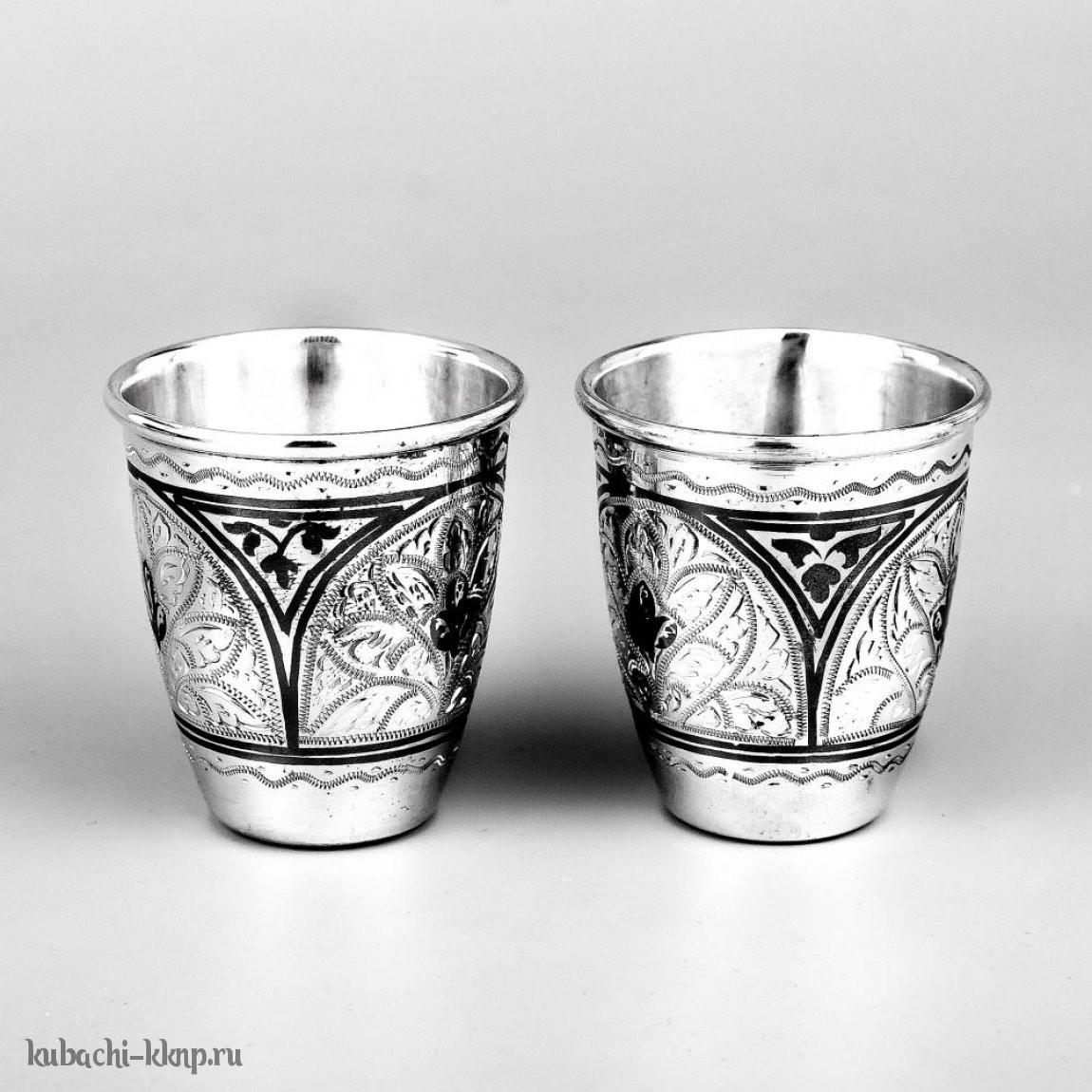 Набор серебряных стопок с арочным орнаментом «Двойка», 40 мл, нс014