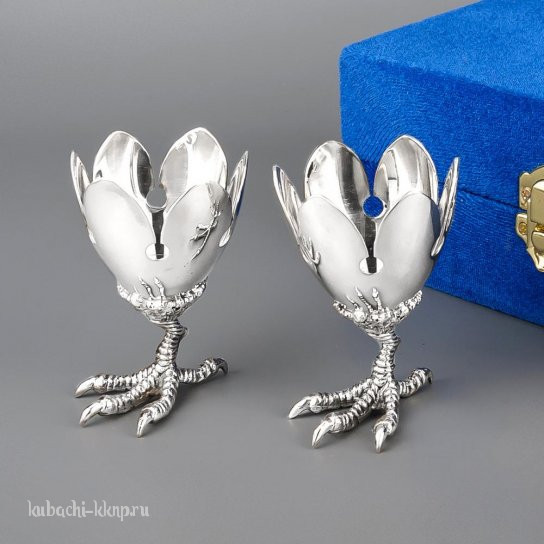 Набор серебряных  пашотниц на куриной ножке «Черно-белое» - пш013