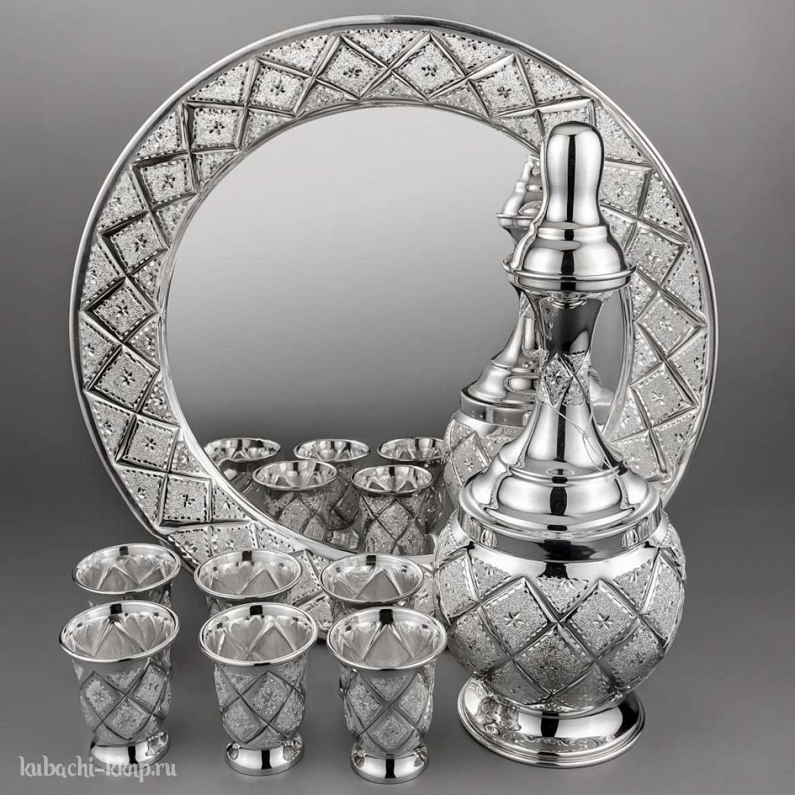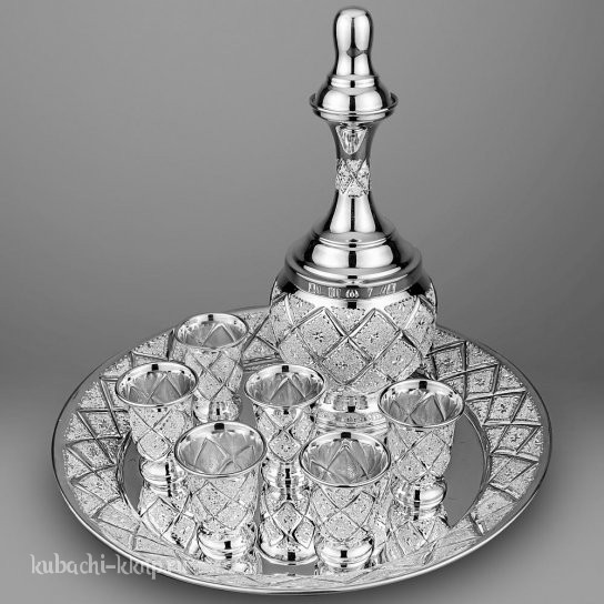 | Параметры: | Высота: 24 см графин и 5,5 см стопка, Диаметр: 27 см поднос, Объем: 0,5 л и 0,04 л, |