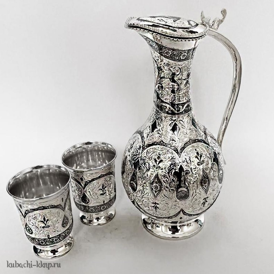 Серебряный набор с гравировкой для воды с двумя стаканами, 0,8 л и 0,17 л, ндв050