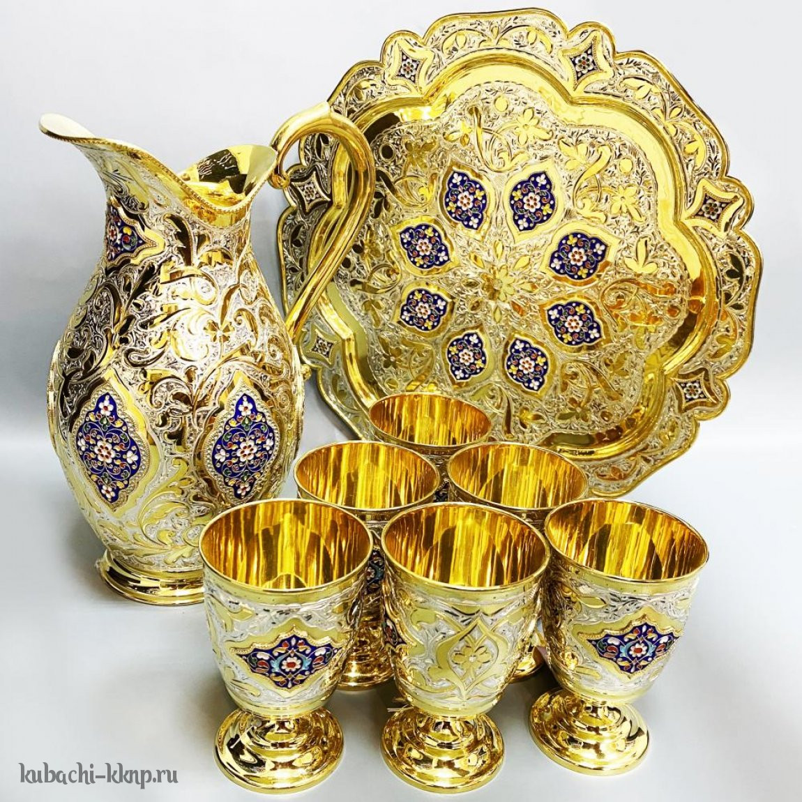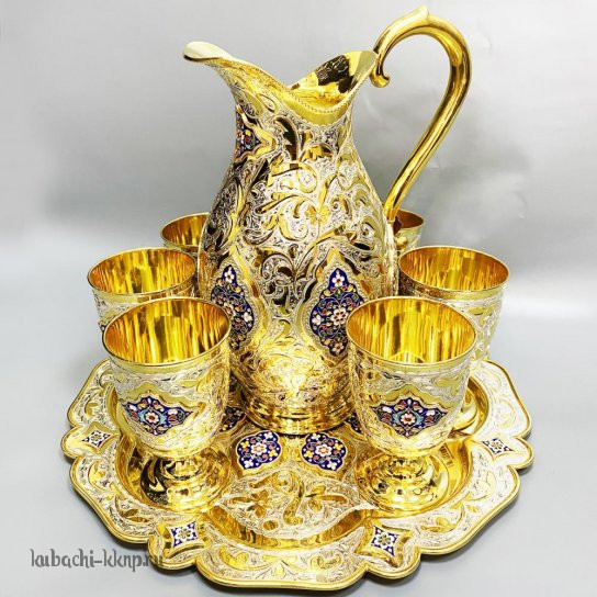| Параметры: | Высота: 24,5 см кувши. 10,9 см стакан, Диаметр: 32 см поднос. 7 см стакан, Объем: 1,6 л кувшин 0,21 л стакан, |