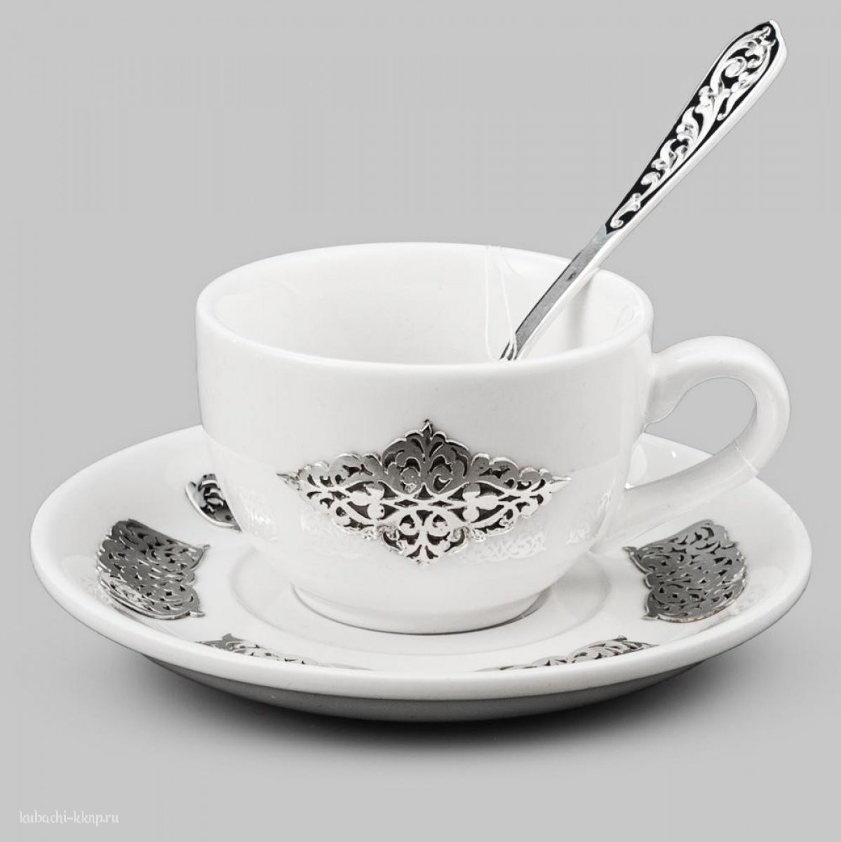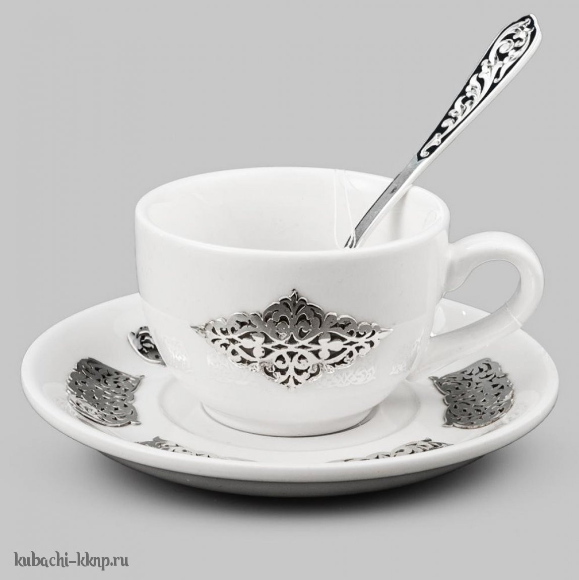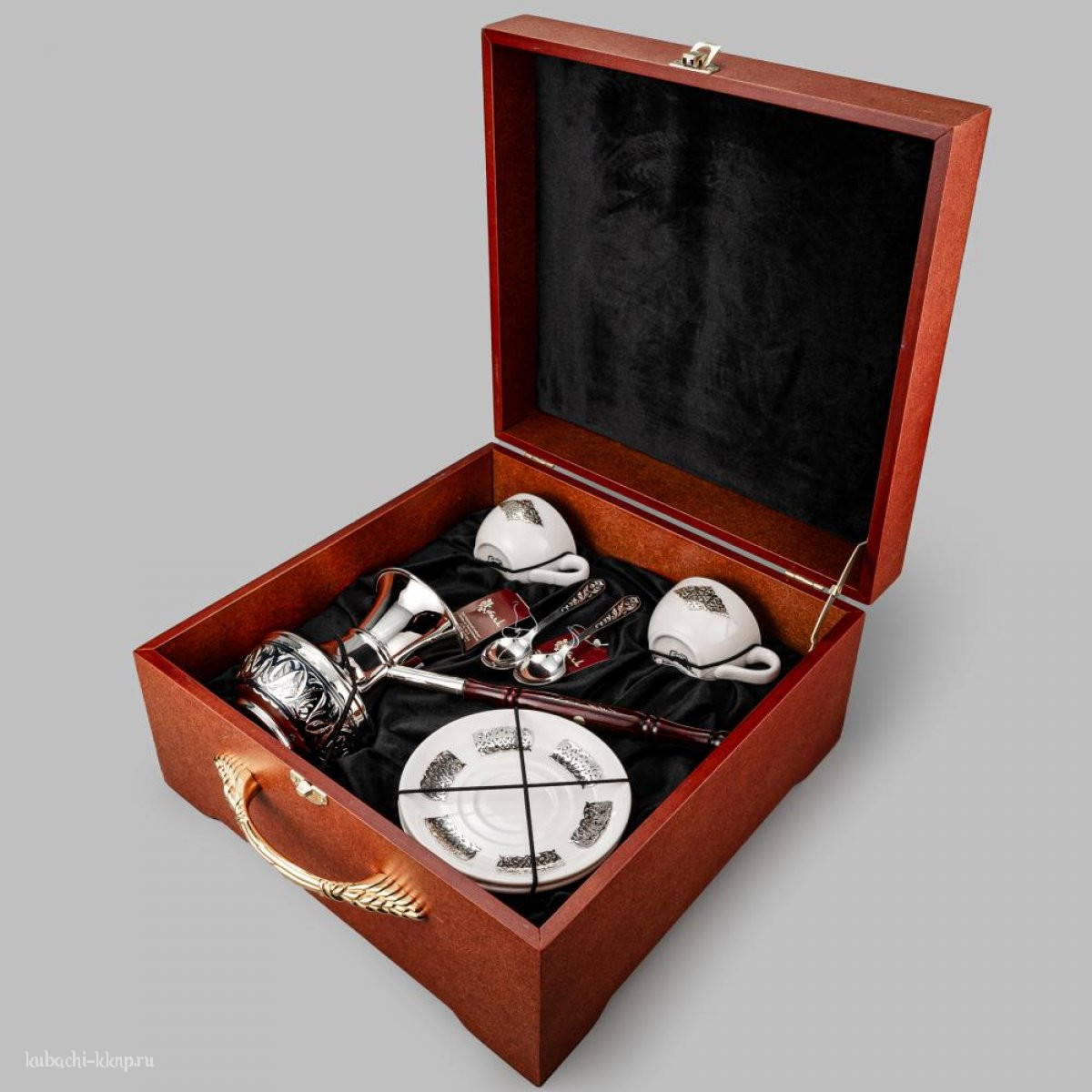 | Параметры: | Длина: 11,3 см ложка, Высота: 12 см турка и 4,5 см чашка, Объем: 400 мл турка и 90 мл чашка, Вставка: фаянс, |