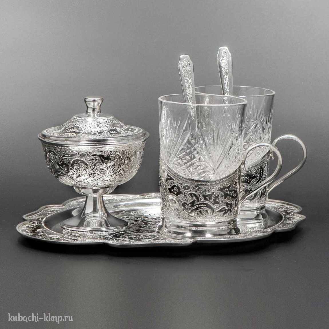 Чайный набор из серебра с гравировкой, чср001