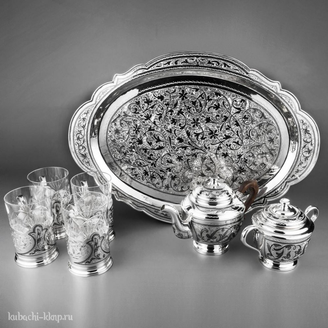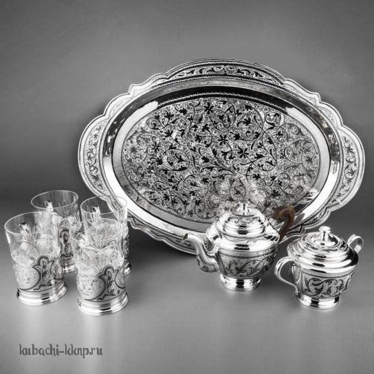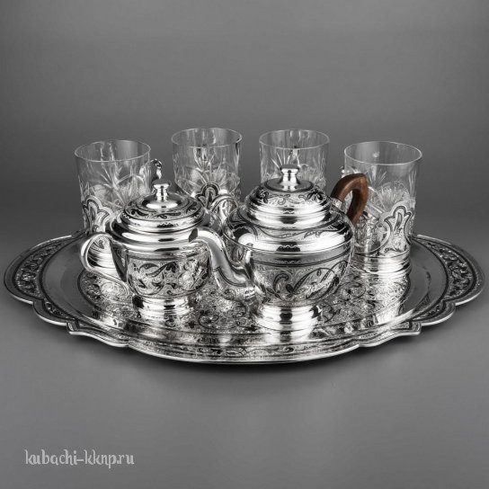 Серебряный кофейный набор с двумя чашками, 250 мл и 115 мл - нкф04