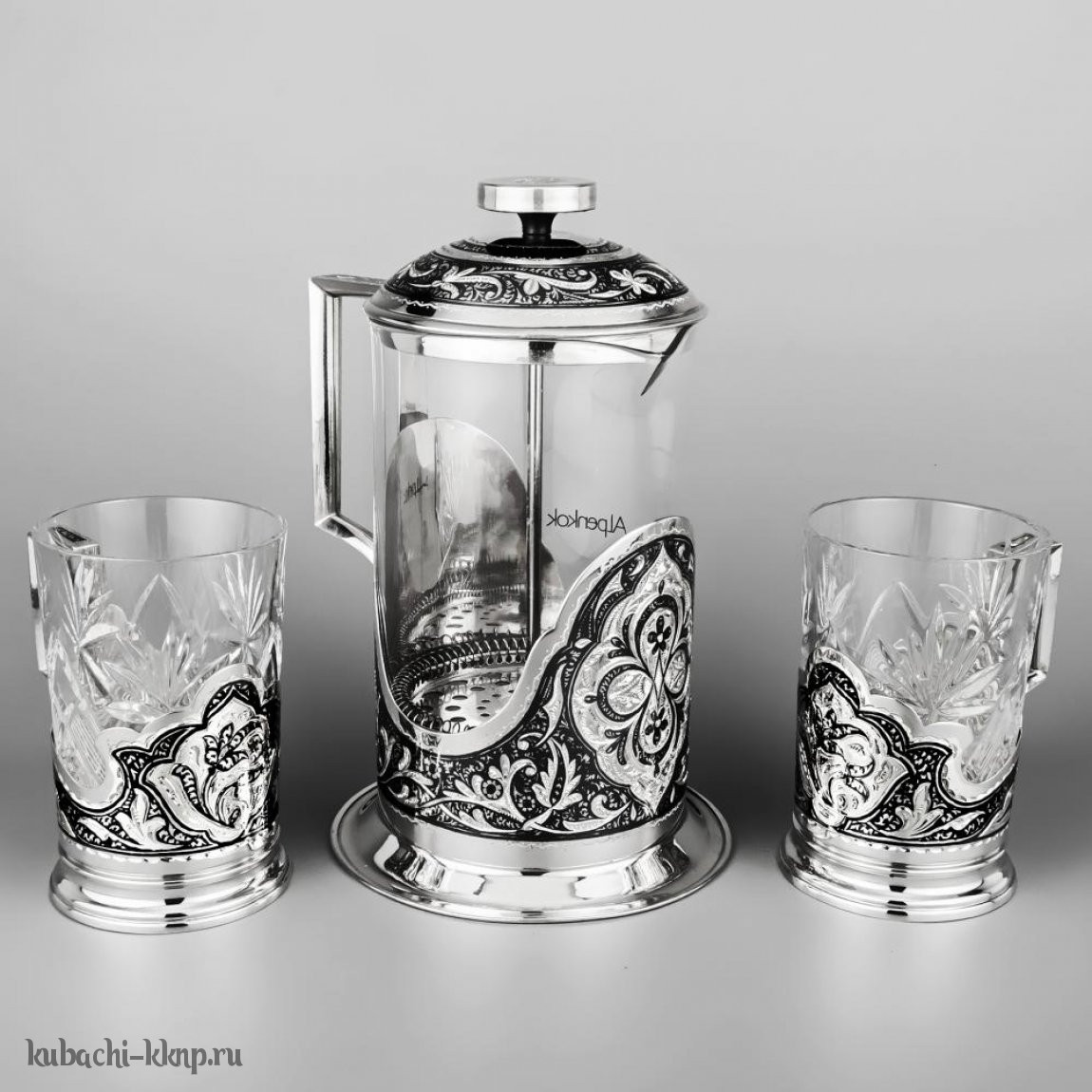 Набор из двух серебряных стаканов с чернением и гравировкой - ст063-2