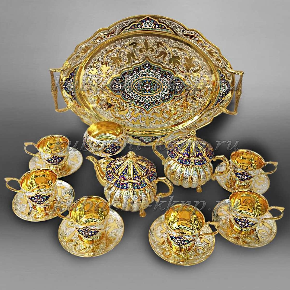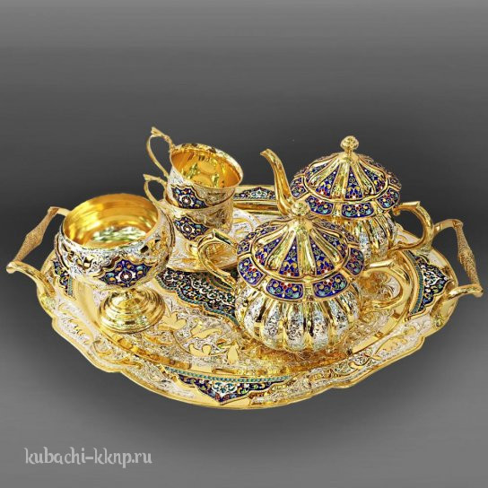 • Серебряный набор для воды  с позолотой и эмалью - ндв026