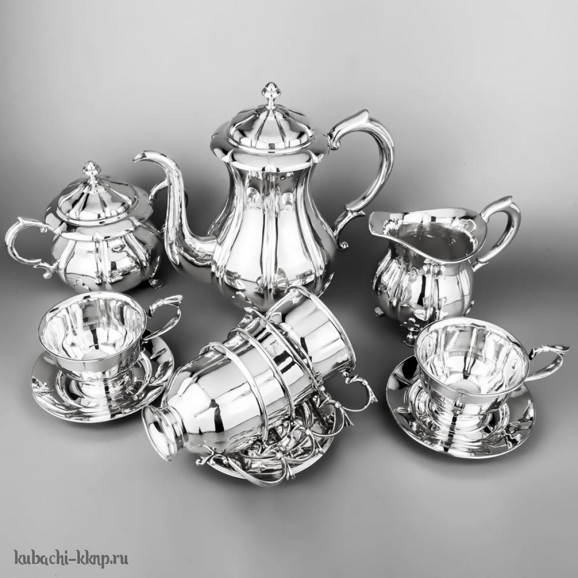 Чайный сервиз из серебра «Глянец», чср08