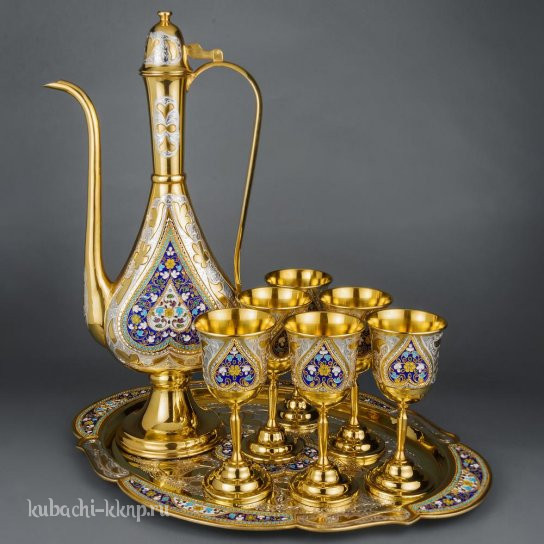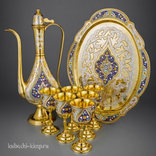 • Серебряный набор для воды  с бокалами на подносе - вн05