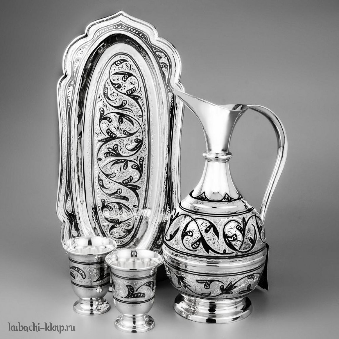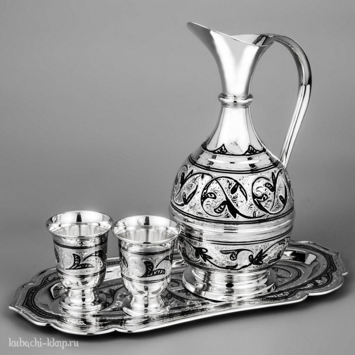 Серебряный водочный набор с подносом и двумя румками, вс09
