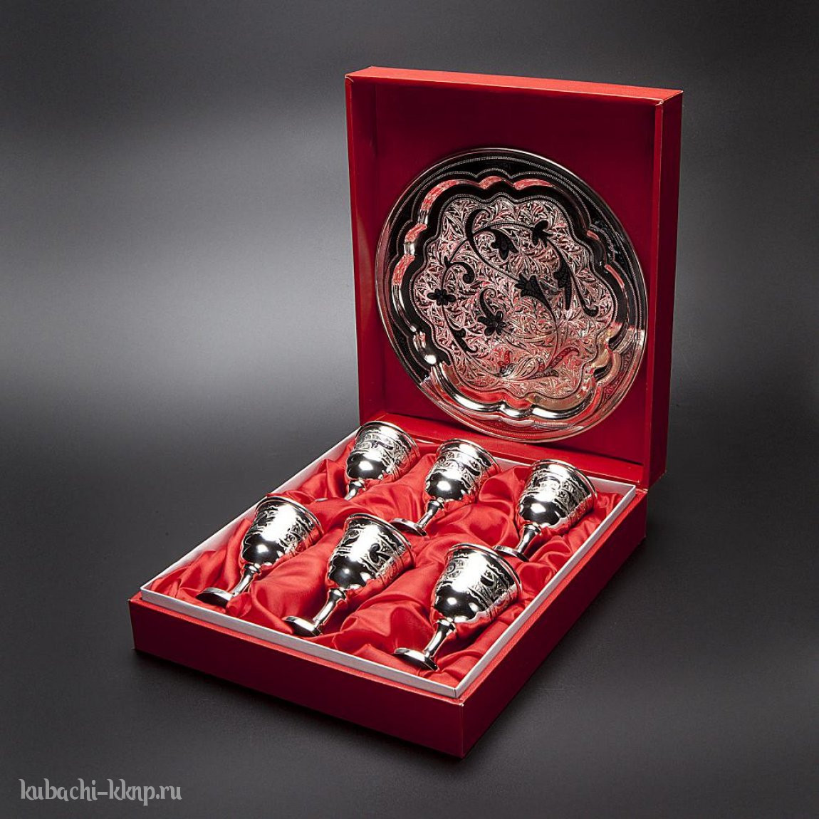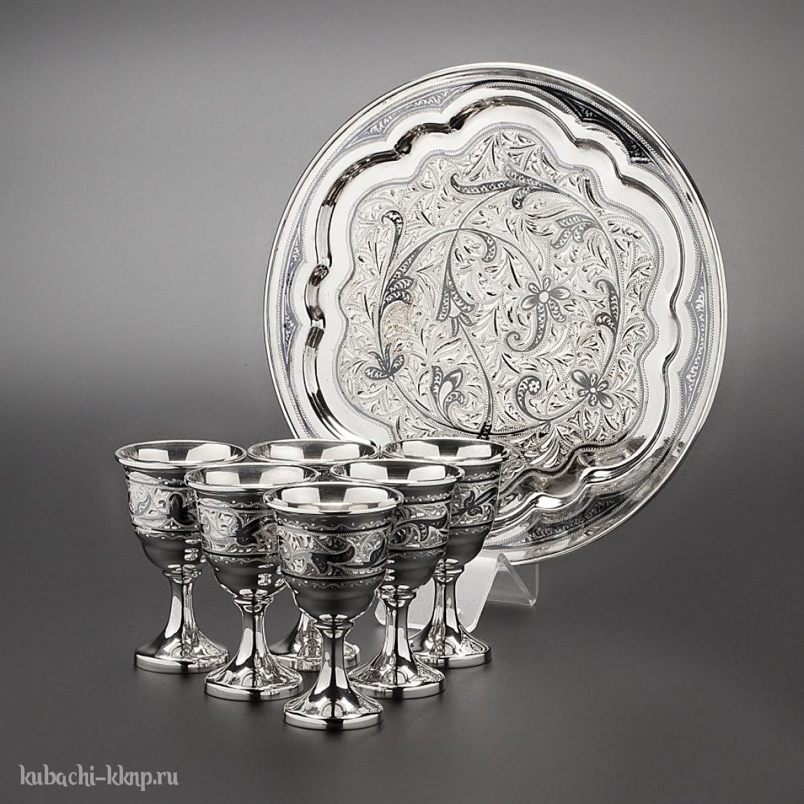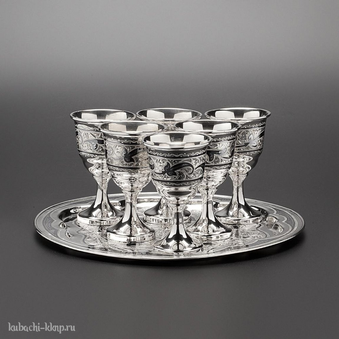 Набор бокалов  из серебра 925 пробы на свадьбу на подносе - вн03