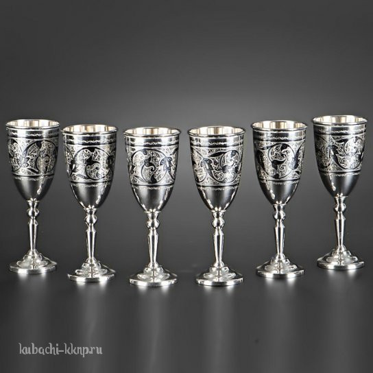 Набор авторских больших серебряных фужеров (6шт) - ф117-6
