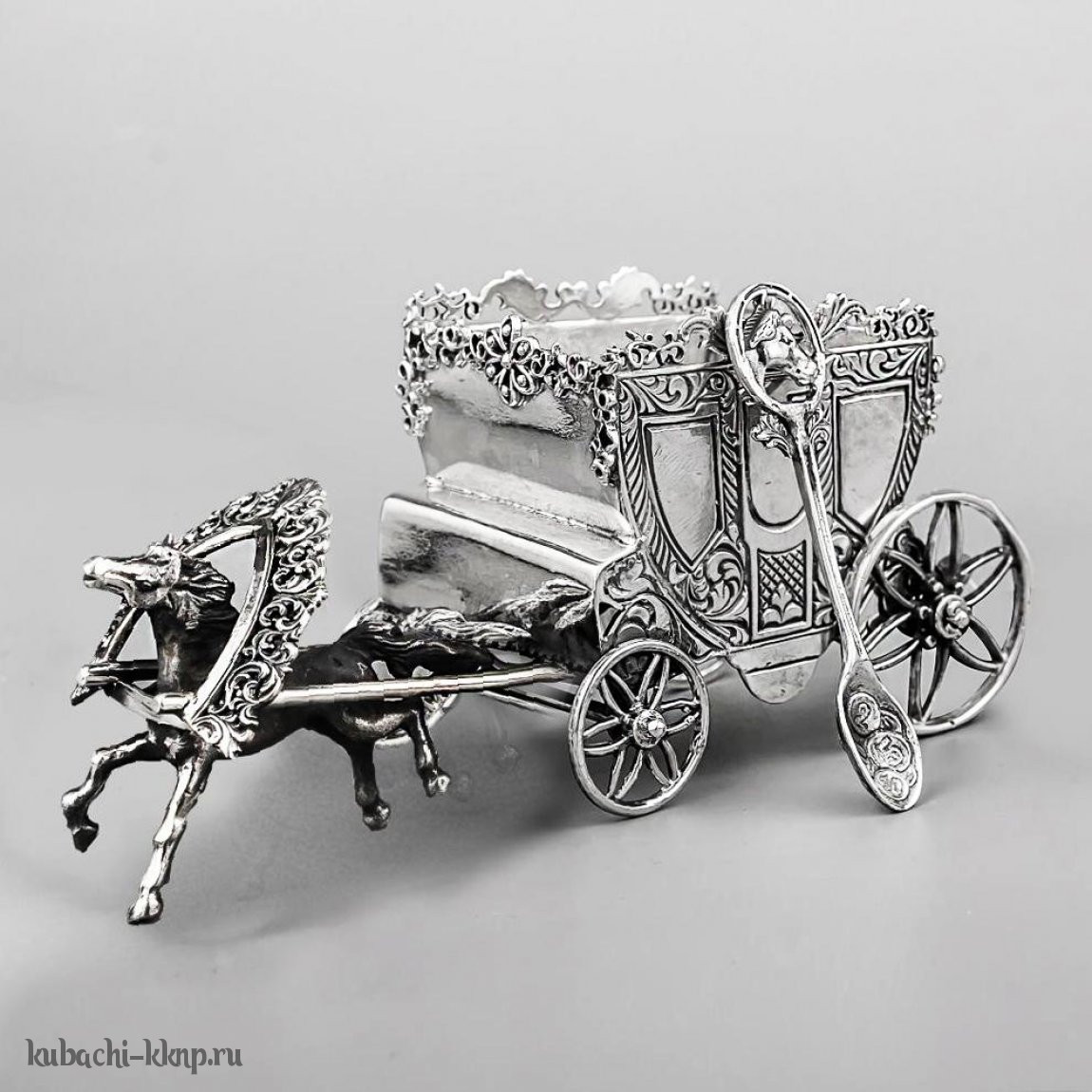 Серебряная солонка «Карета» с ложечкой ангелочком, с021