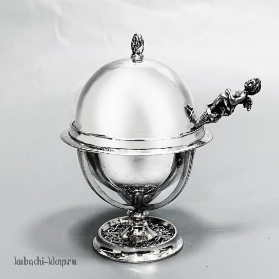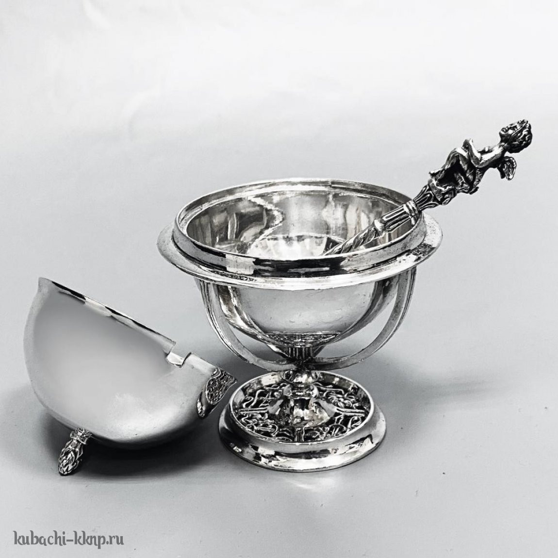 Глянцевая серебряная солонка с ложечкой-ангелочком, С047