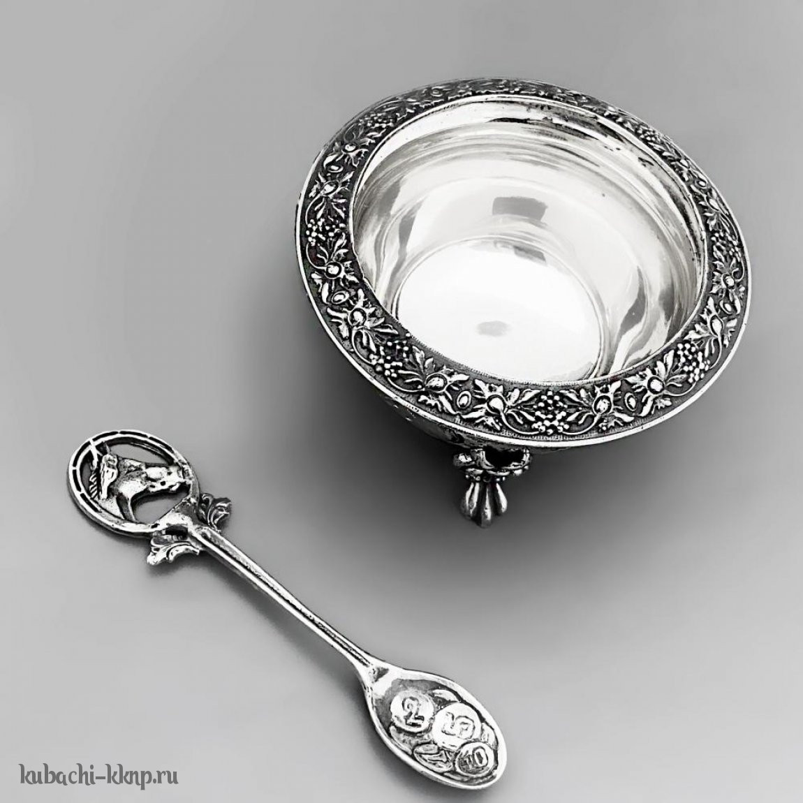 Серебряная солонка с ложкой «В упряжке» - с012