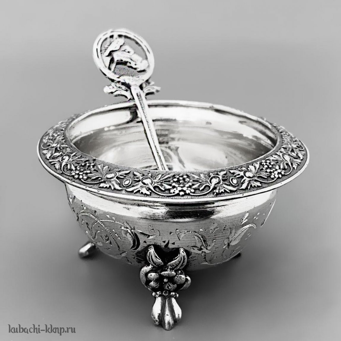 Серебряная солонка с ложкой на ножках, с054