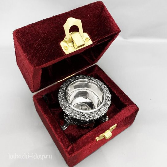 • Серебряная солонка/перечница с стеклянной вставкой и ложкой ангелочек - с041