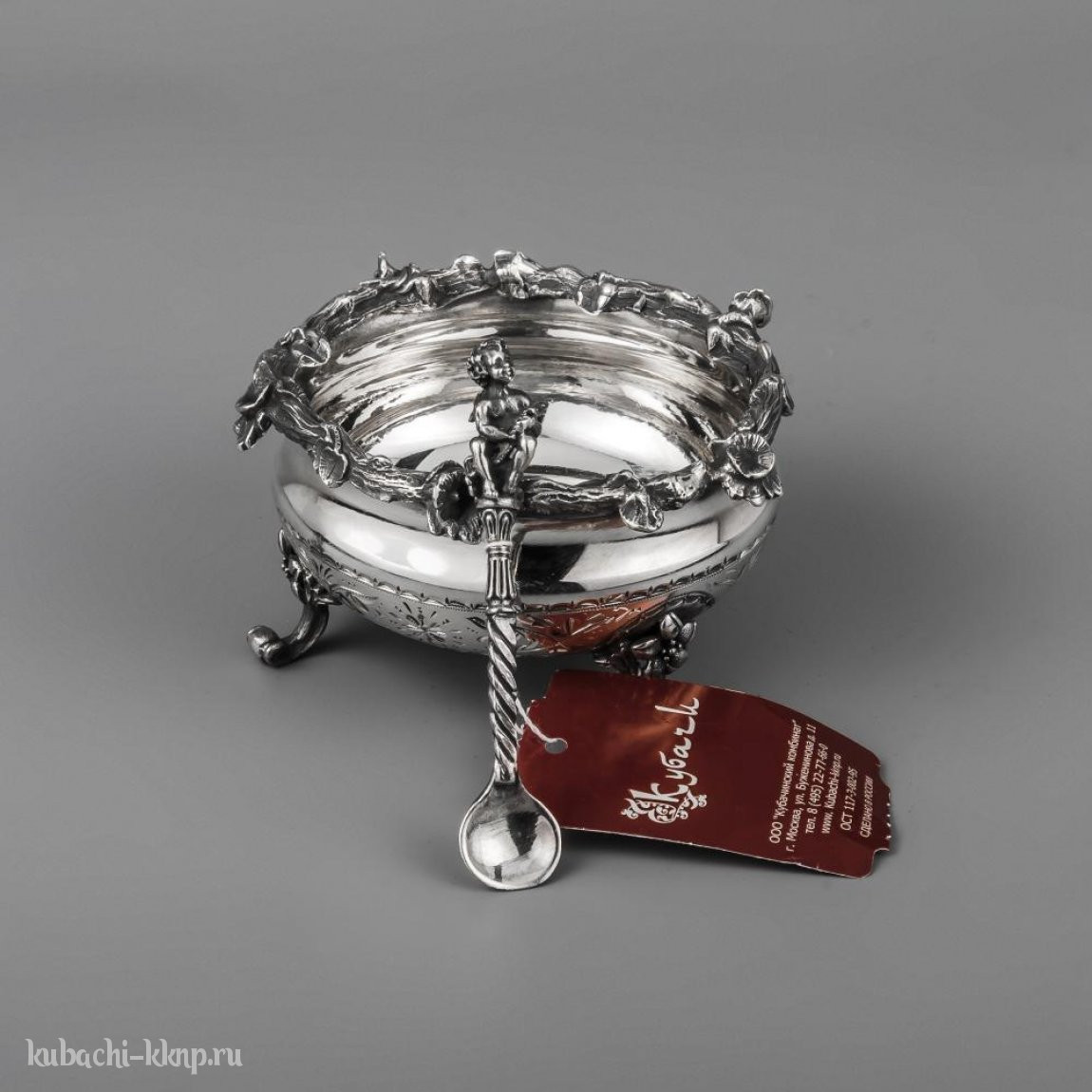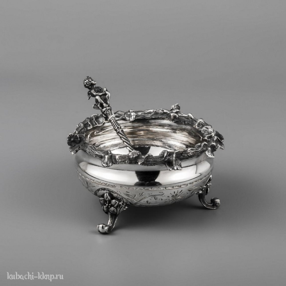 Серебряная солонка с ложечкой