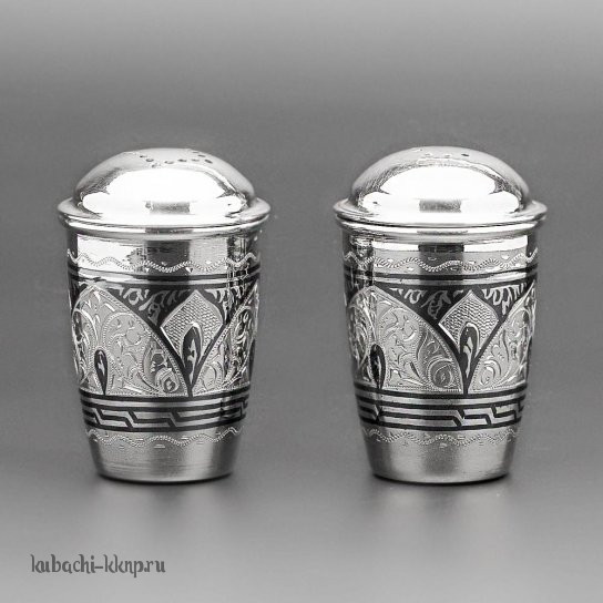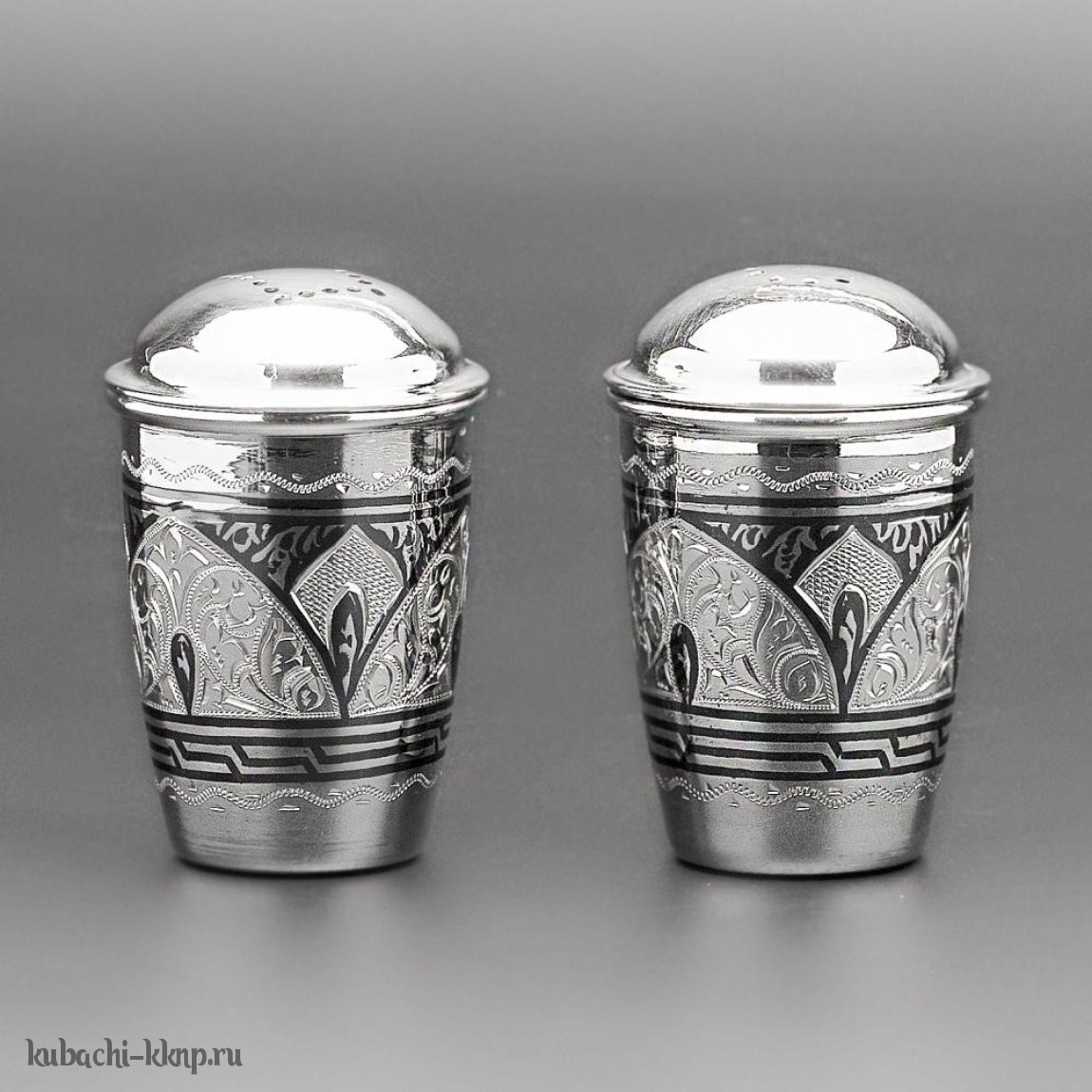 Серебряная солонка  с ложкой «Русская тройка» - с053