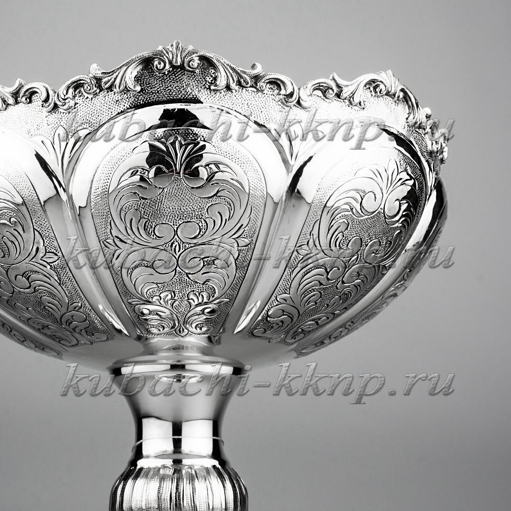 • Серебряная ваза для фруктов с гравировкой и чеканкой - вз025