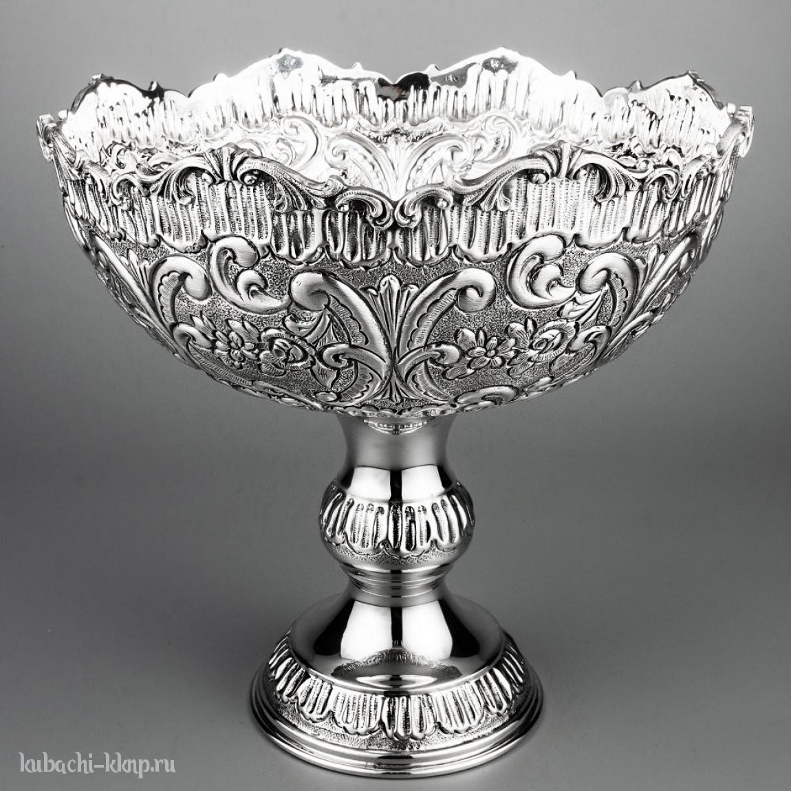 Серебряная ваза для фруктов с красивой каймой, вз03