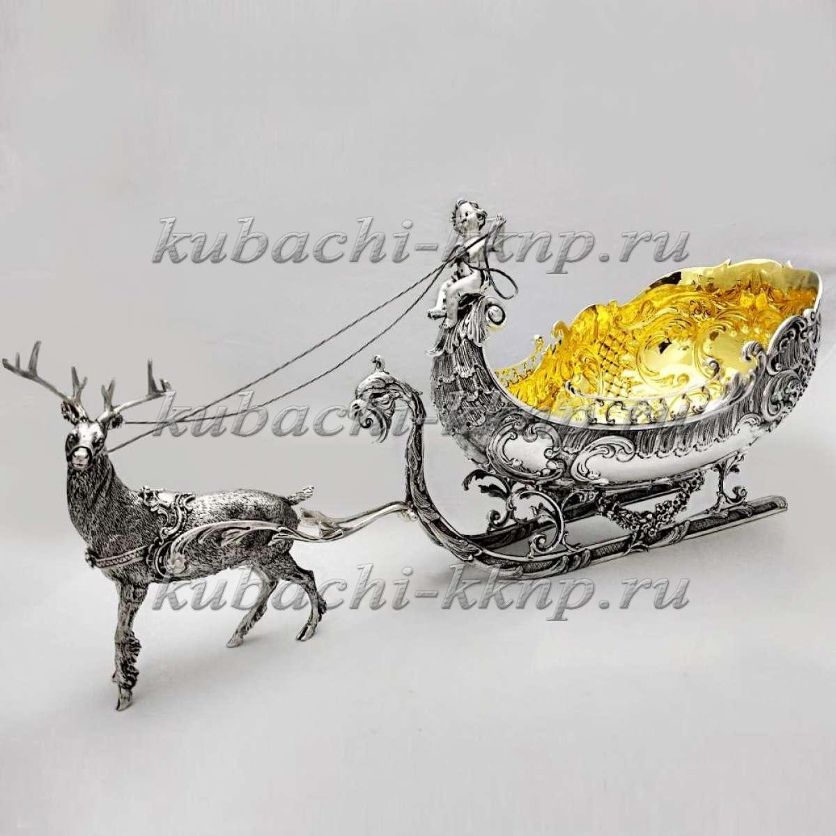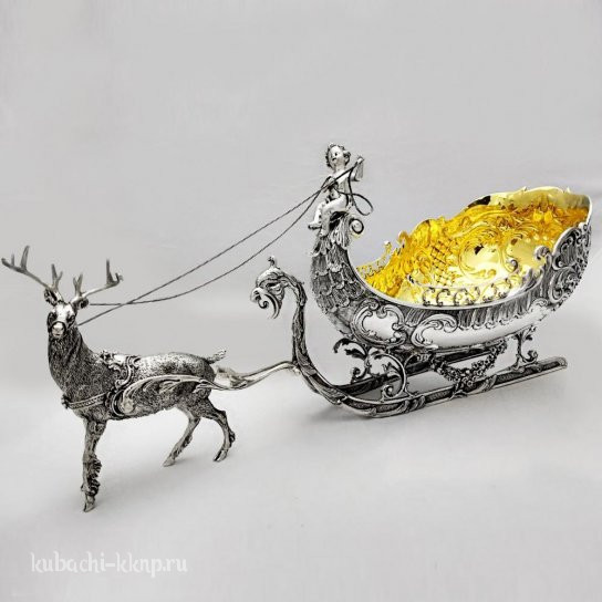 • Серебряная ваза для фруктов с рогами для вина - вз026