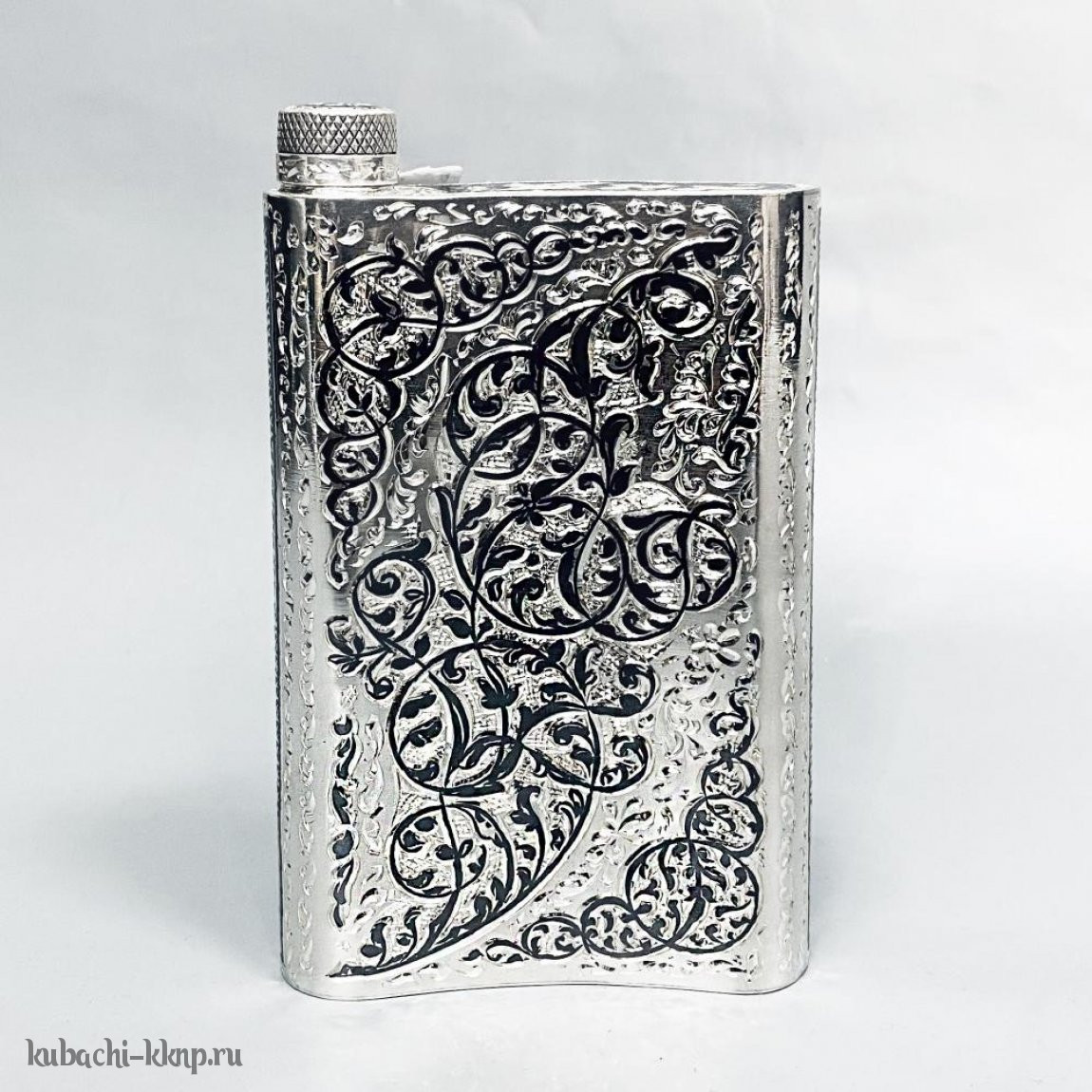 Серебряная фляга с черненым орнаментом по краям, 230 мл - фл039