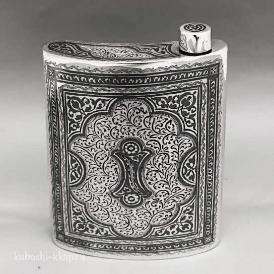 • Фляжка кубачинская из серебра с гравировкой и чернением  - фл00012