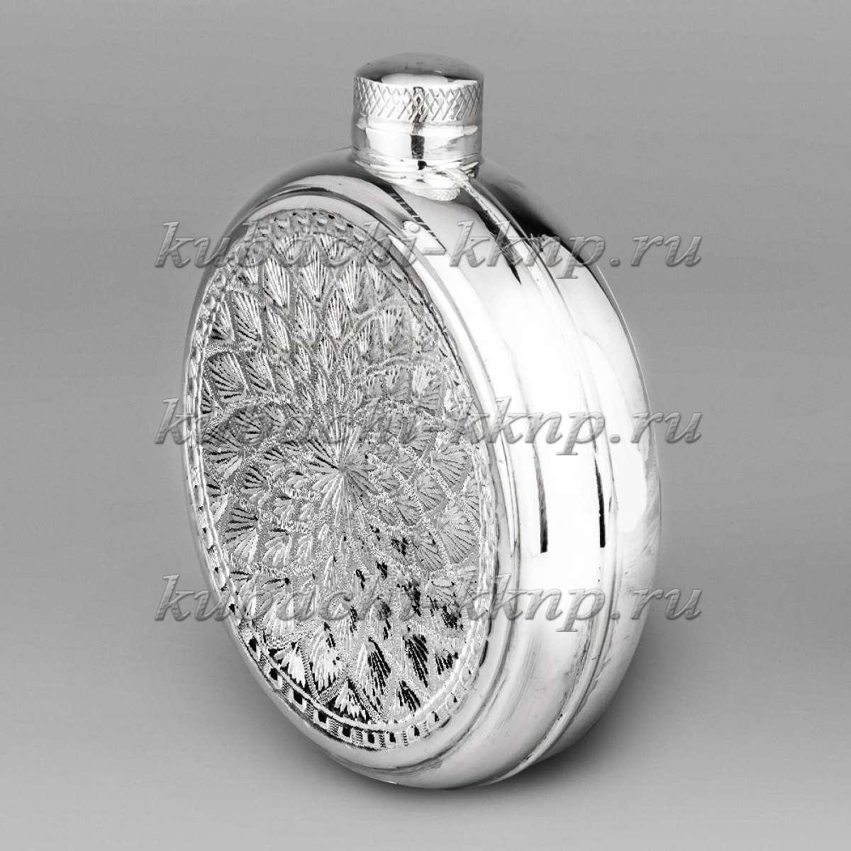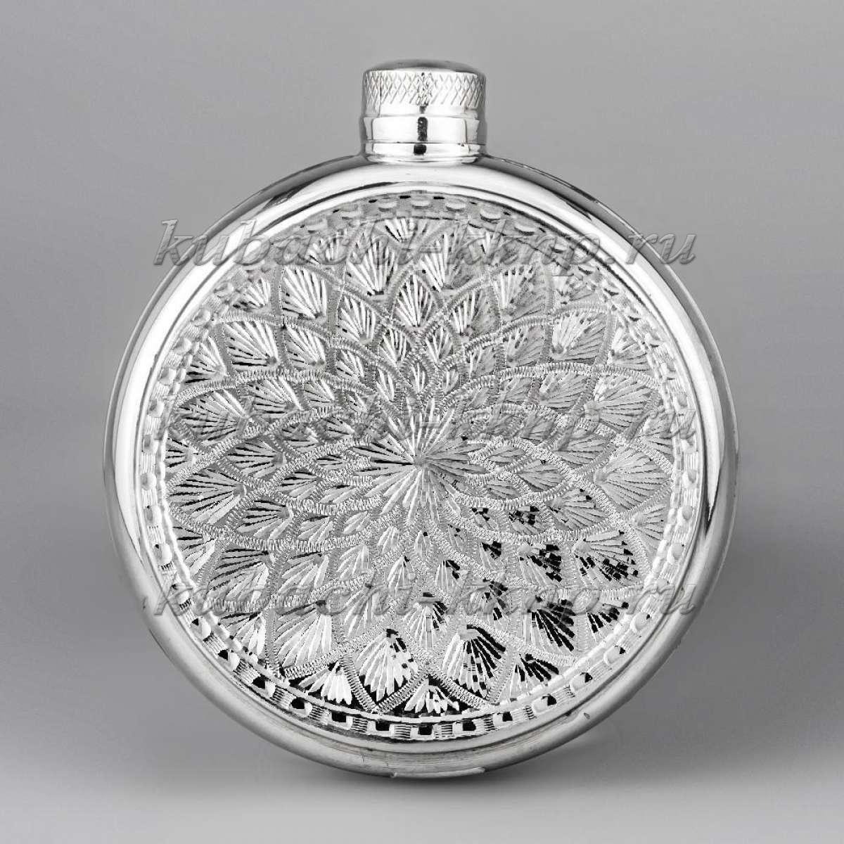 • Круглая серебряная фляга с красивым орнаментом - ФЛ127