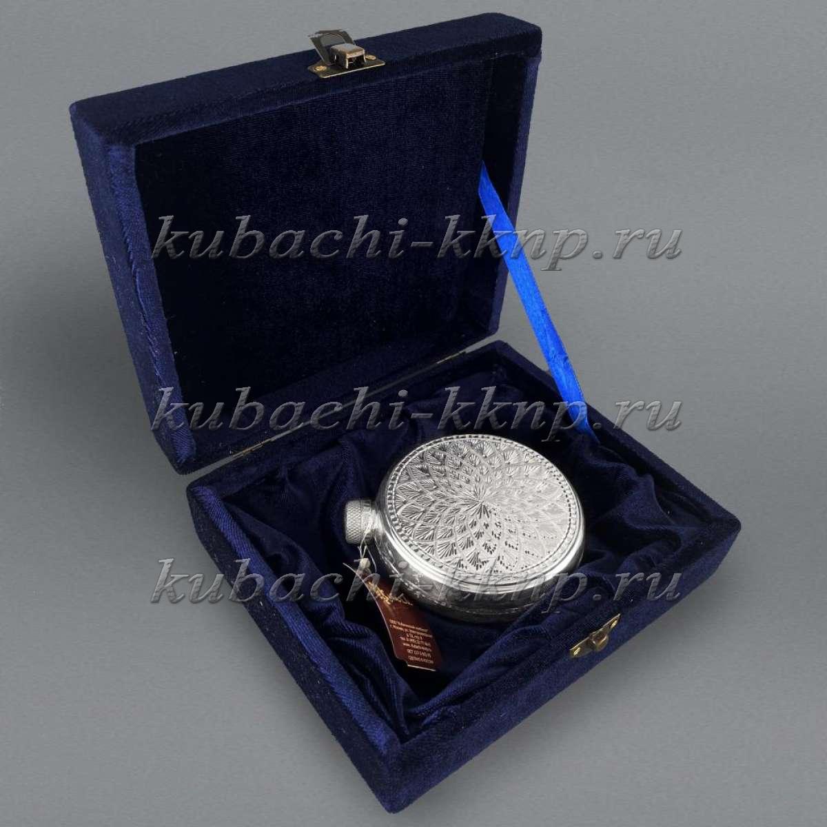 Круглая серебряная фляга ручной работы, ФЛ128