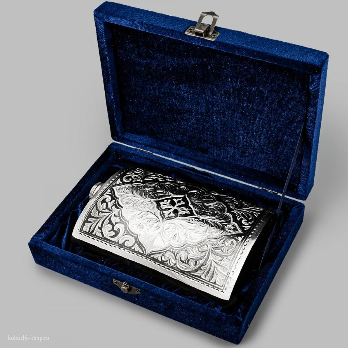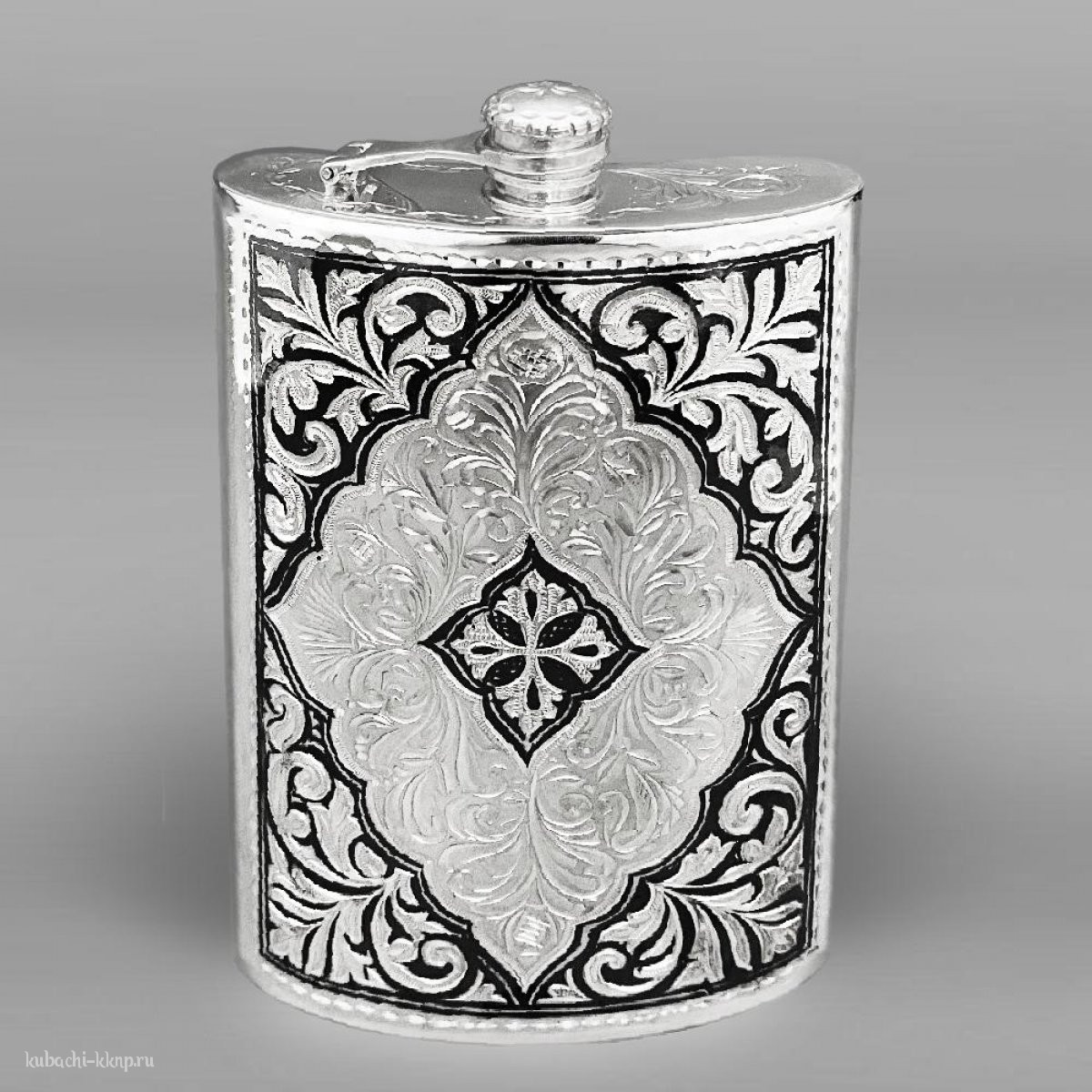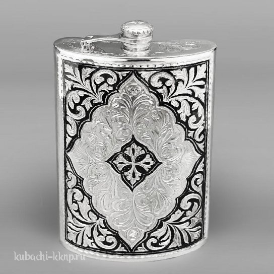 • Серебряная фляга с орнаментом кубачи , 320мл - фл089